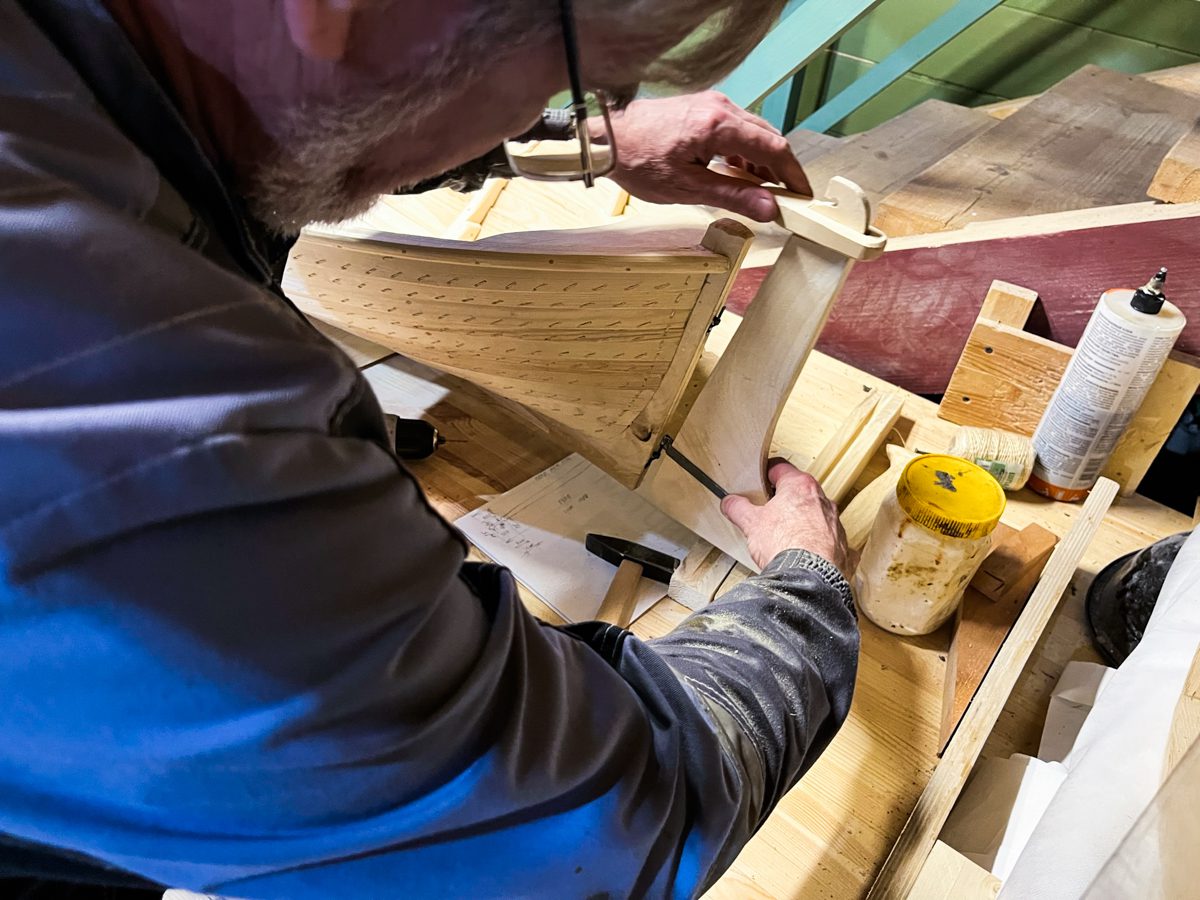 Артём с Егором клеят и ставят клямсы «Поморской шхуны».