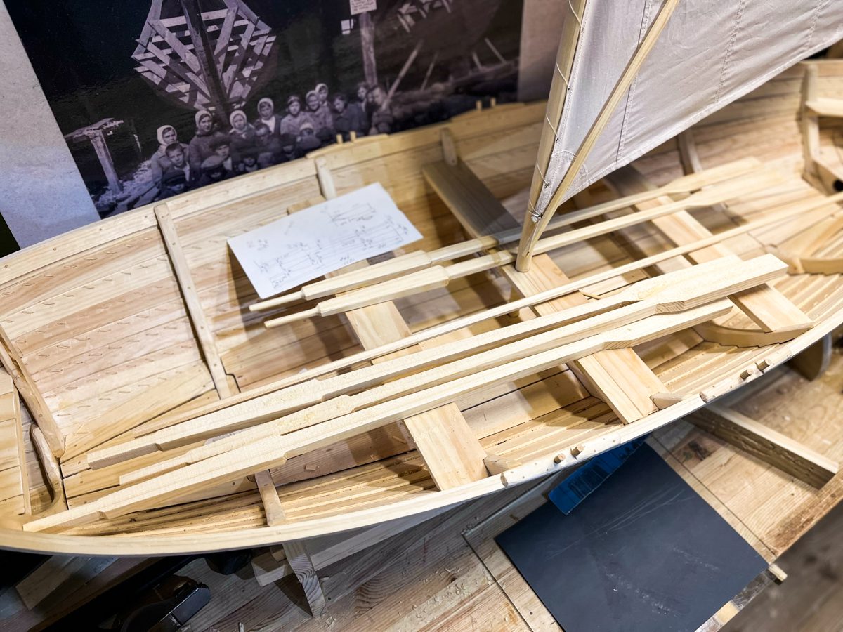 Игорь Козьмин от ковки перешёл к шитью – но не вицей, а нитками. Он сшил первый парус для макета «Матеры».