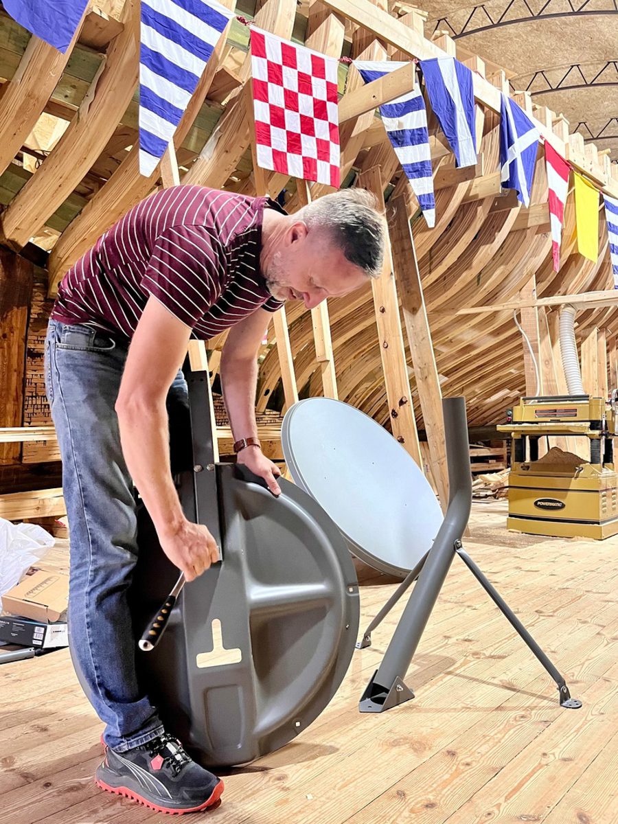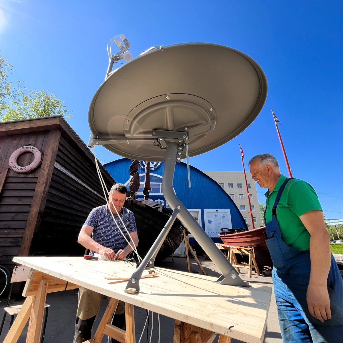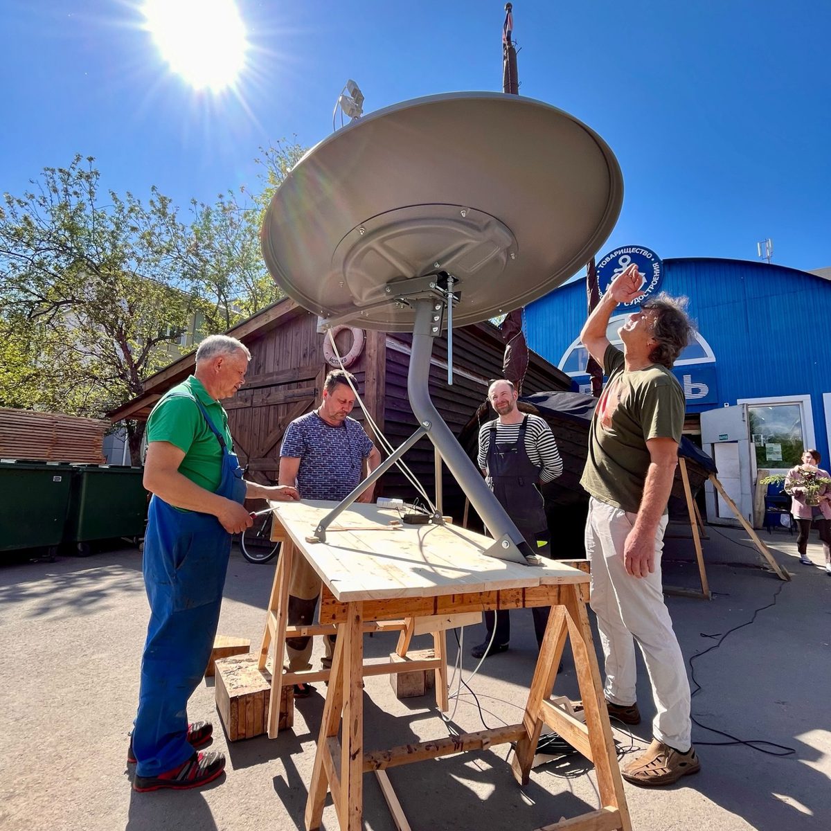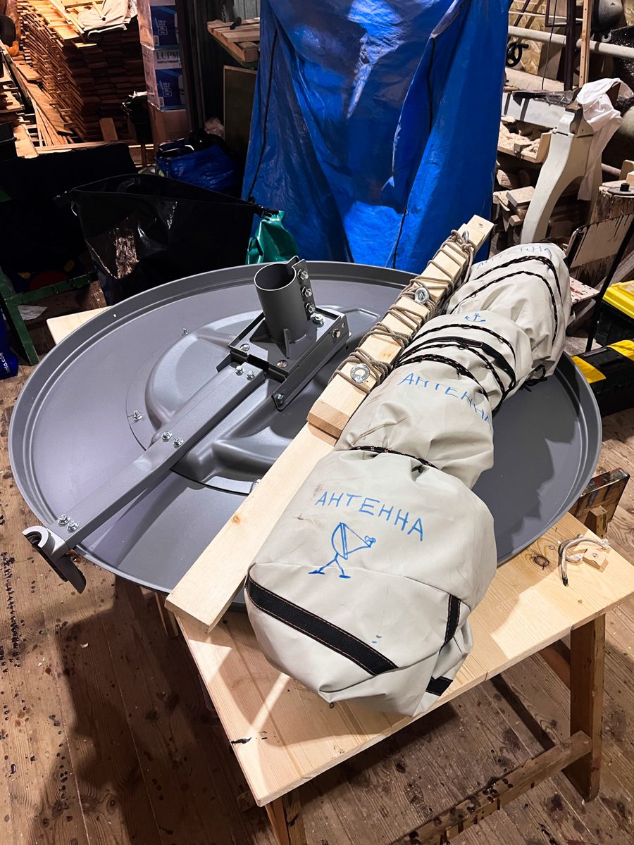 Пришла спутниковая тарелка от наших партнеров РТКОММ. Тарелка большая – размером в 2/3 Артёма. Теперь экипаж будет на связи с нами и с миром.