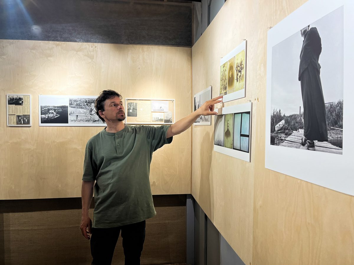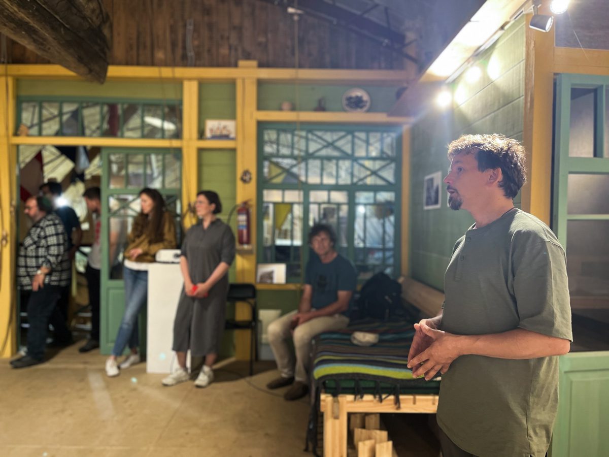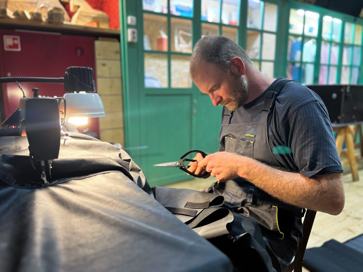 Костя Ярочкин шьёт тент для «Матеры». Со стороны похоже на платье для Бастинды.