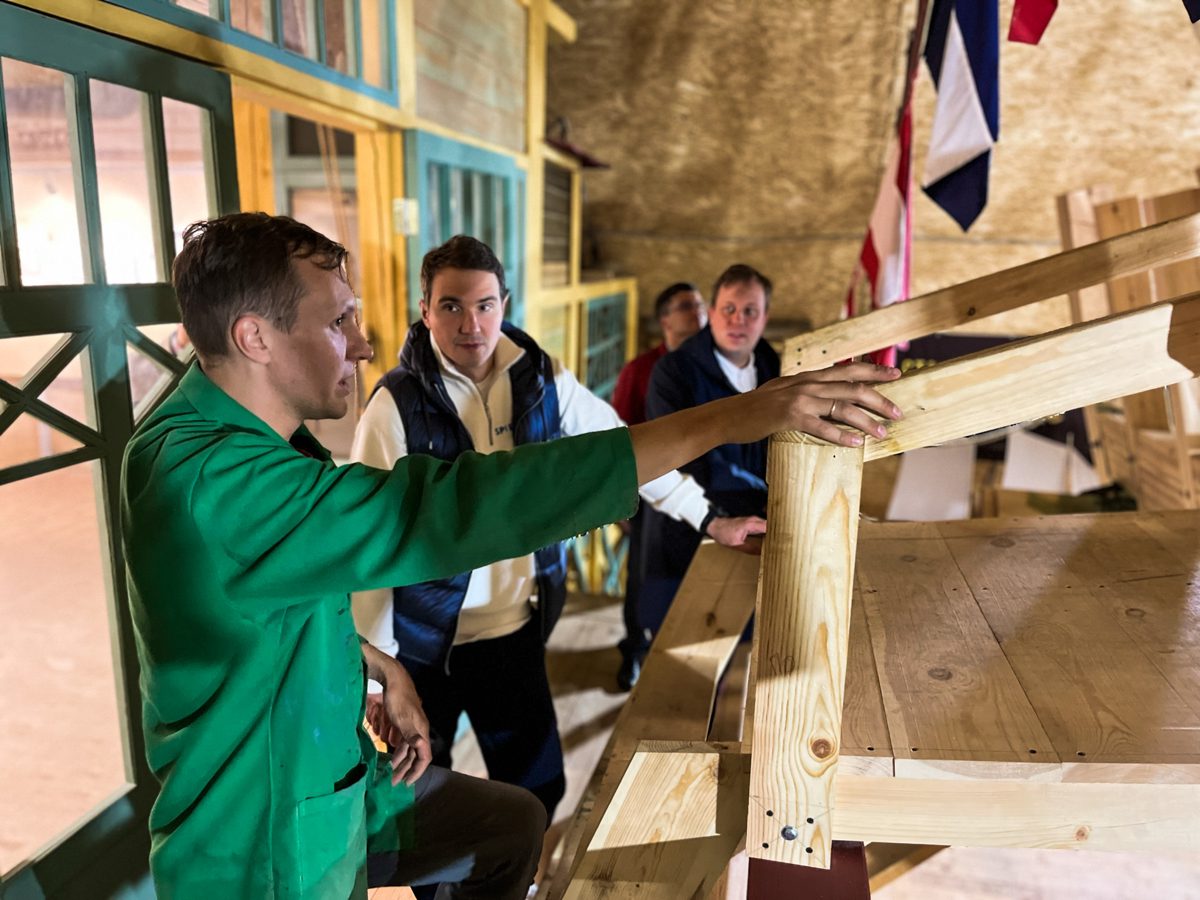 А другой рукой дирижирует оставшимся плотницким дуэтом в лице Артёма Калинина и Егора.