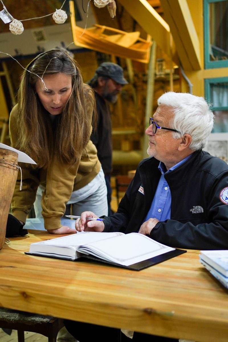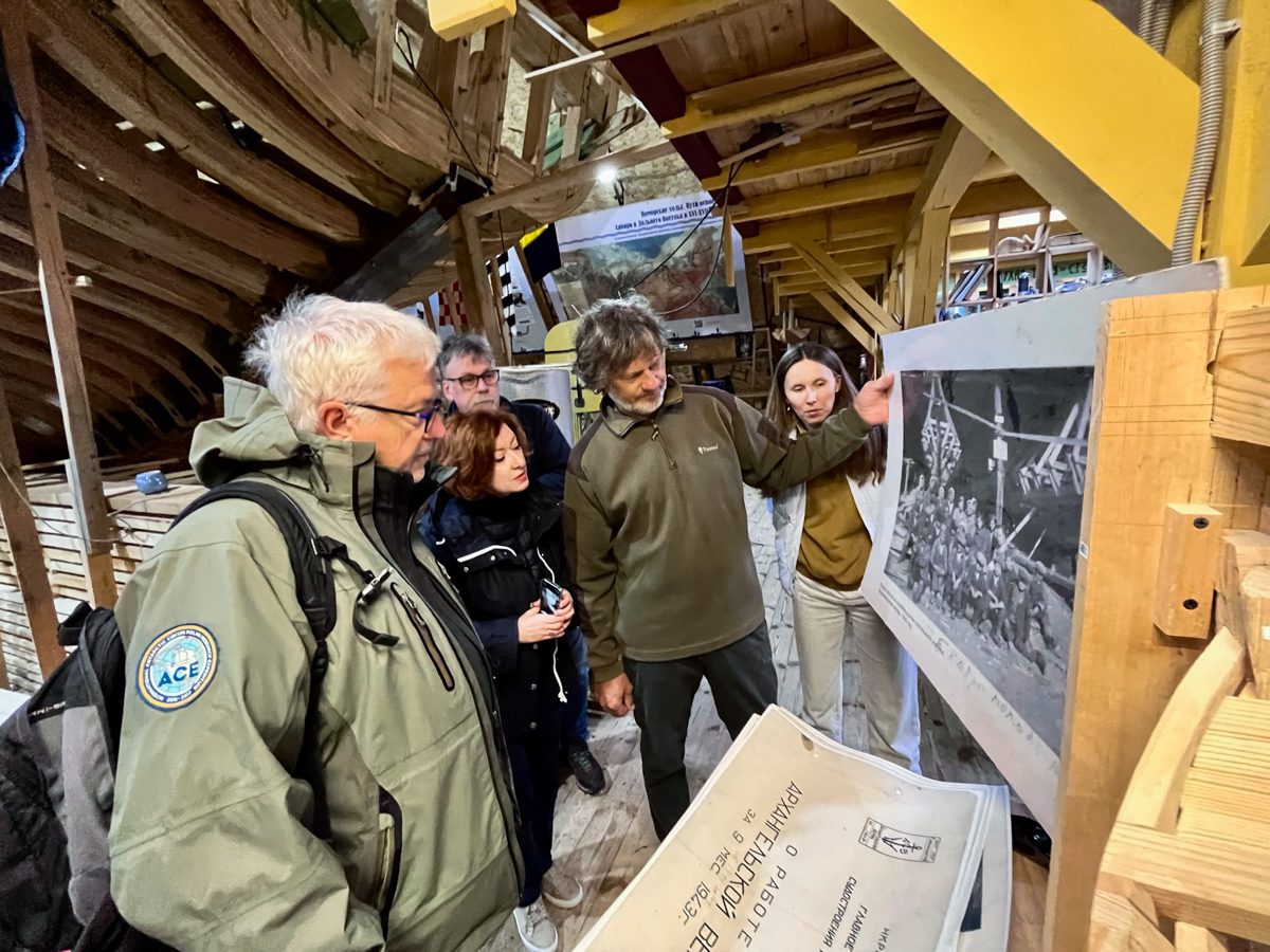 На верфи гости – автор книги «Сибирская эпопея», швейцарский профессор Эрик Хёсли и генеральный директор издательства «Паулсен» Раиса Неяглова-Колосова.
