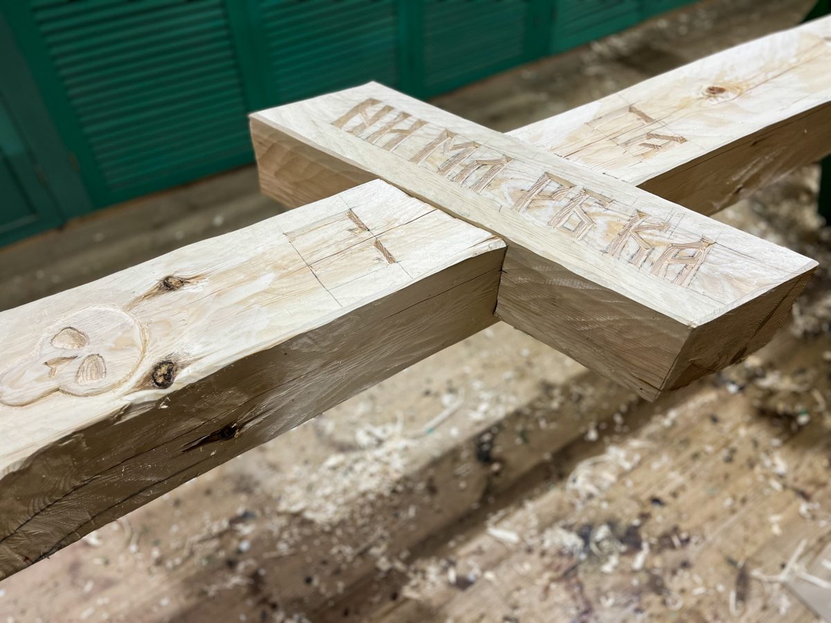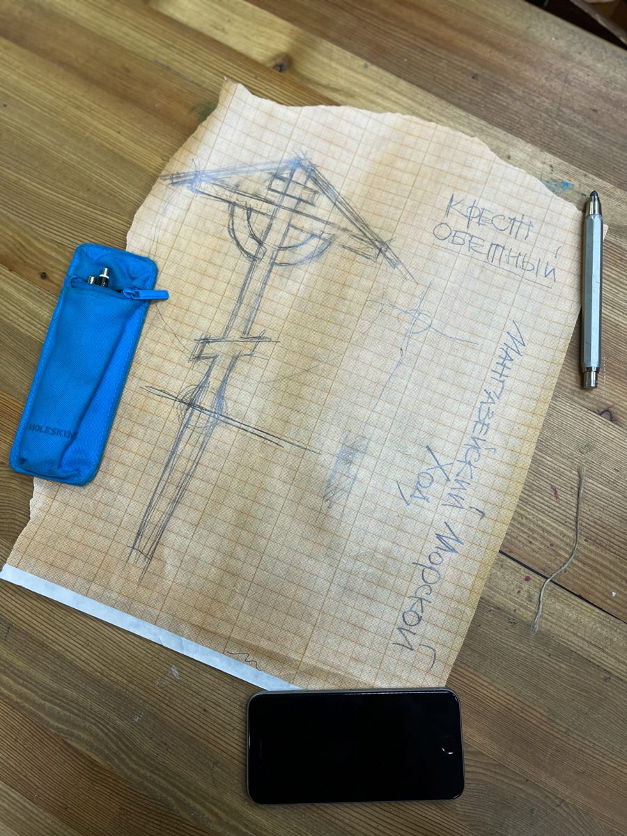Эскиз сделал Саша Антонов, под его руководством и вместе с ним над крестом работали Евгений Петров, Максим Тумановский, Илья Михайлов и Женя Шкаруба.