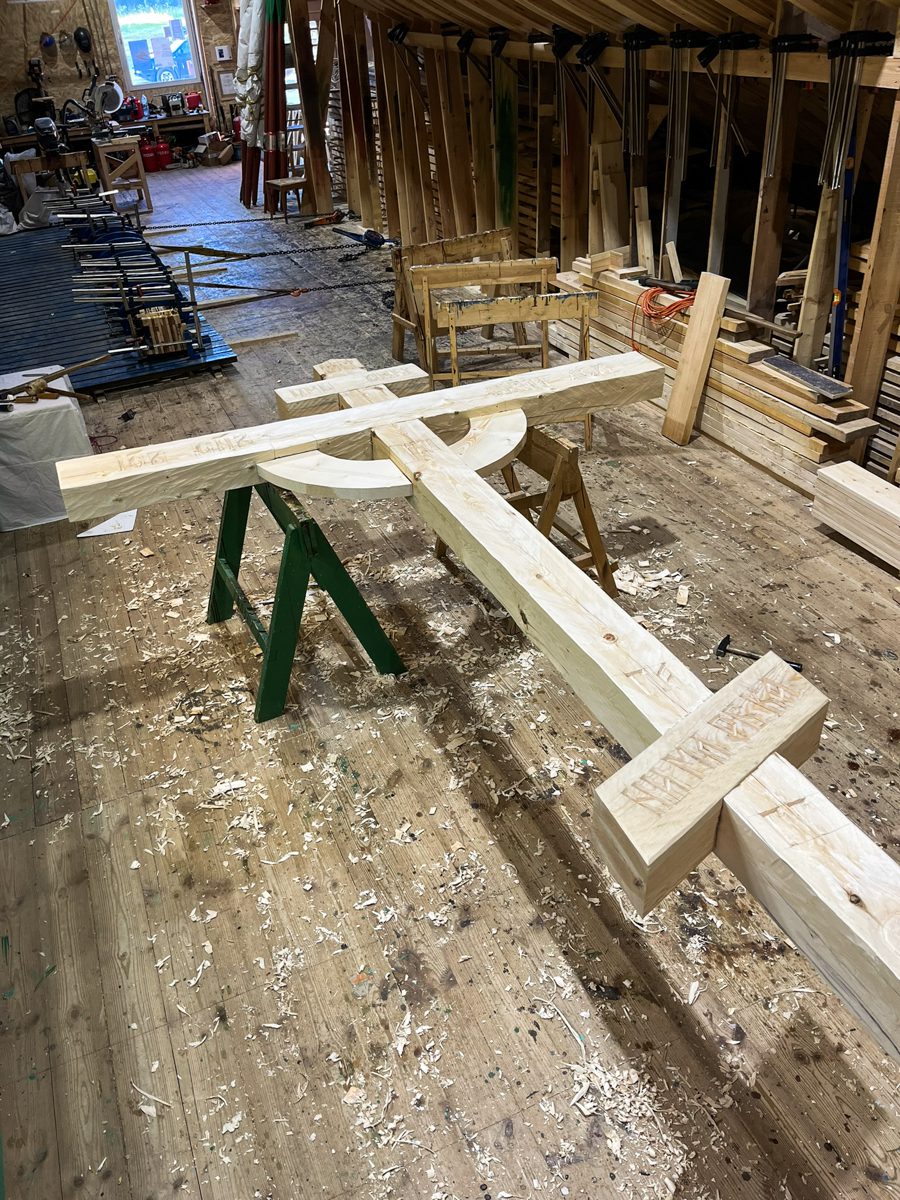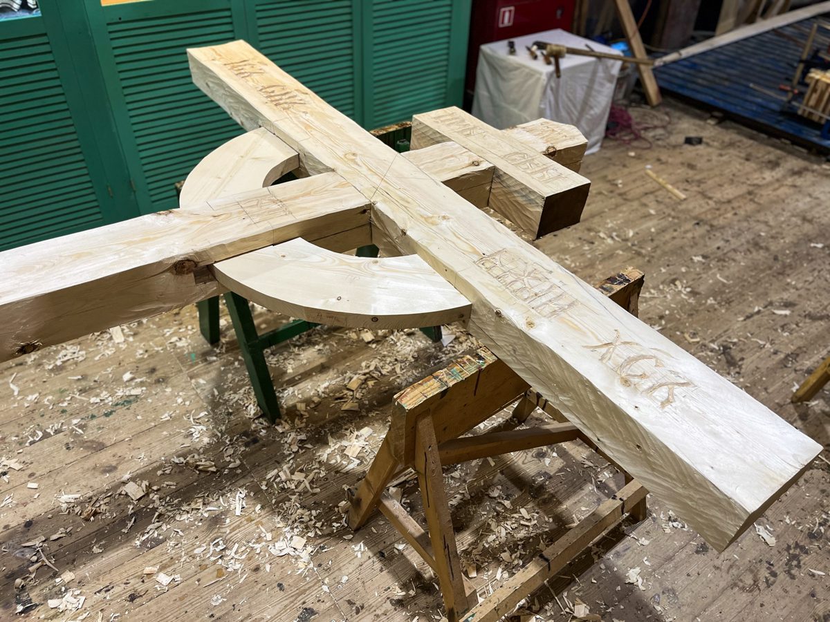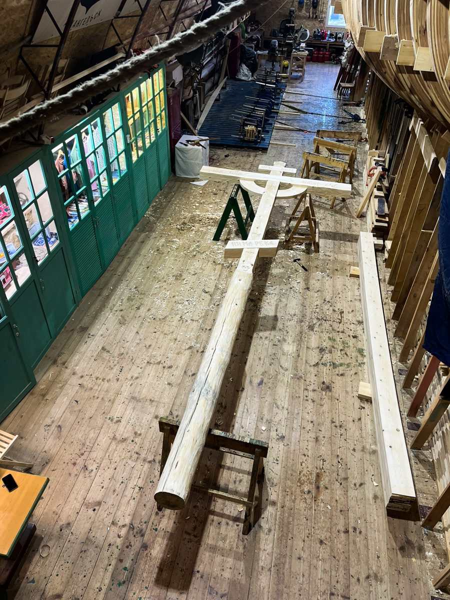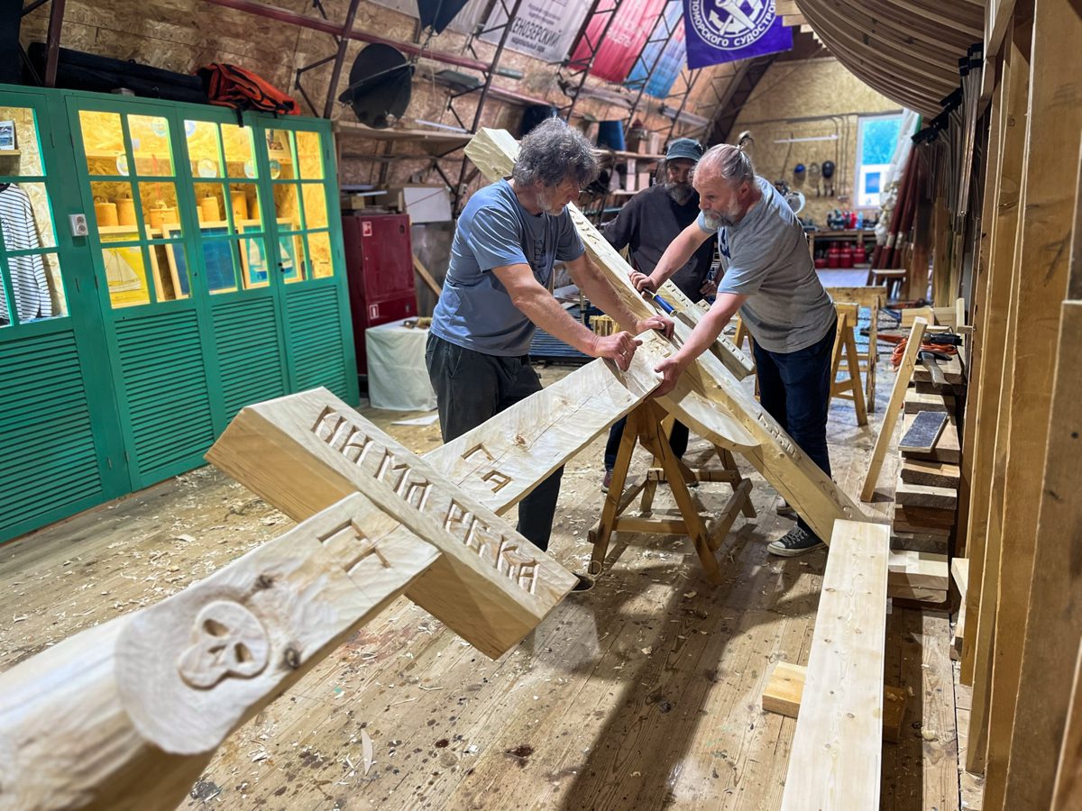 За несколько дней, которые команды проведут в Архангельске, решено сделать обетный крест, чтобы затем привезти его в Мезень и установить его перед стартом второго этапа. Это старинный обычай: когда предстоит нелегкий морской путь (или если он уже позади), поставить православный крест в знак того, что жизнь и благополучие наше в руках Господа, и на Него уповает мореход в своем нелегком и рискованном деле.