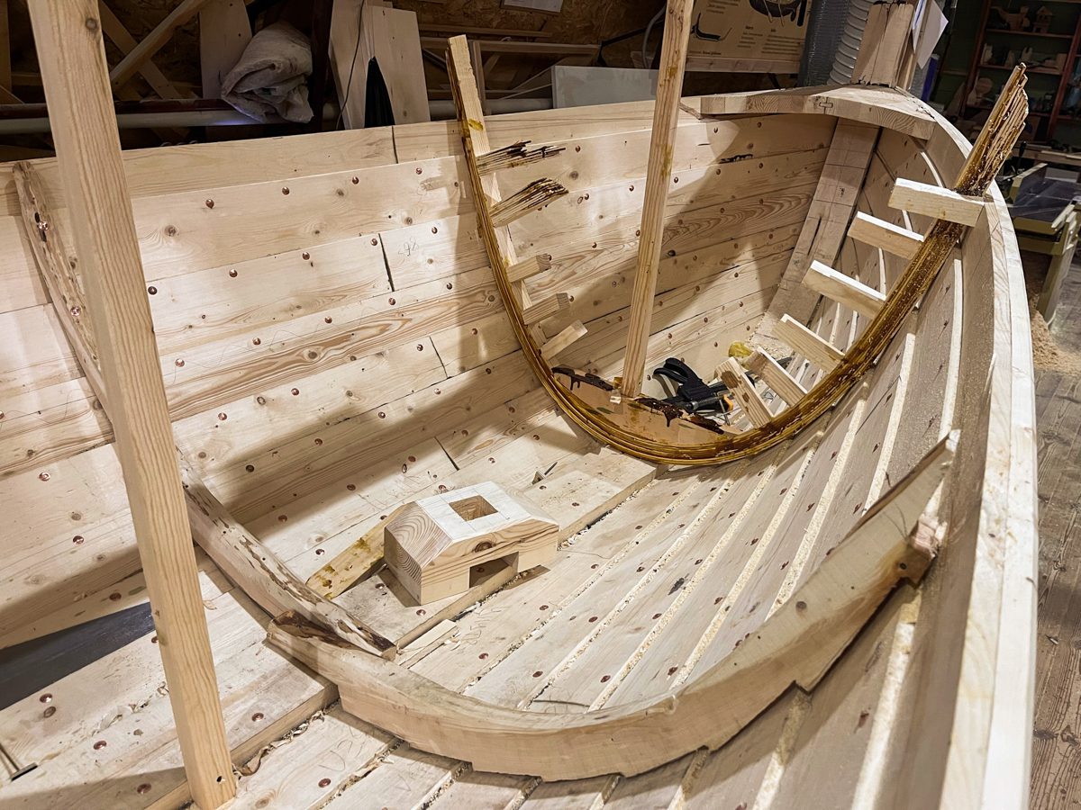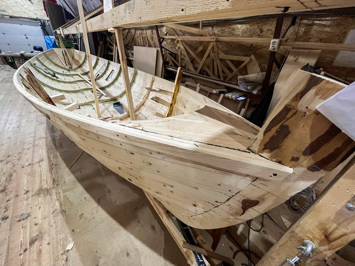 Артём дошивает лодку-соянку. Прямо-таки стартанул с набоями, за три дня нашил чуть не пять штук.
