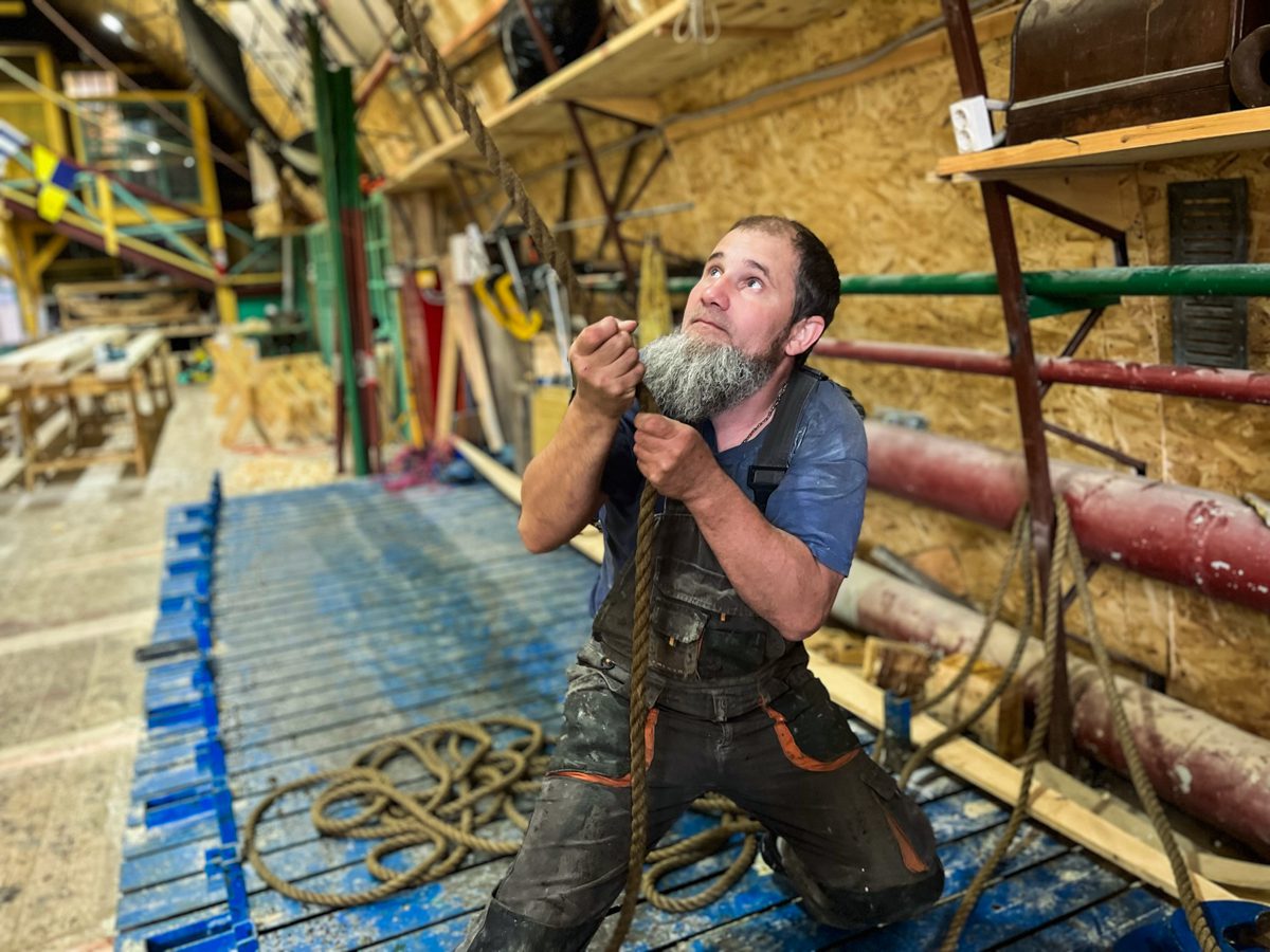 Обратите внимание, вот Артём Бывальцев поднимает на шхуну 150-килограммовый бимс. На веревочке, на пять метров в высоту. Вот почему Теме не нужен тренажерный зал – ему и на верфи хватает нагрузок.