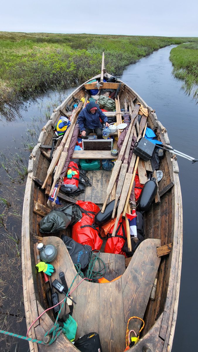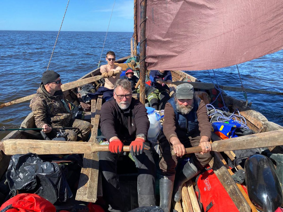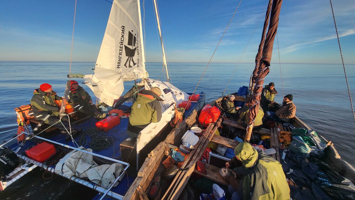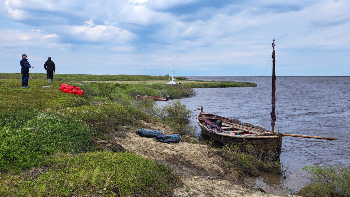1630, закончили проходить Русский заворот. Тематическая часть 2 этапа ММХ: Мезенский залив – Канинский (Чешский) волок – Чешский залив – Святой Нос – Поморский пролив – Русский заворот – пройдены. Начинаем технический заход в Нарьян-Мар для смены команды. Переход составил 115 миль под парусом и на веслах.