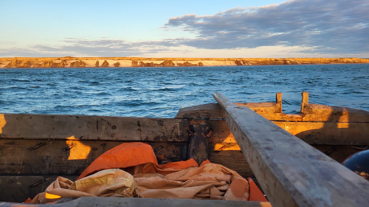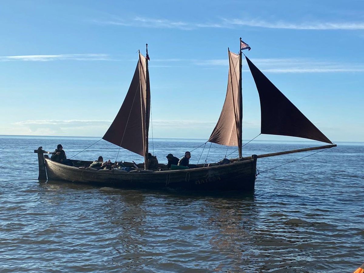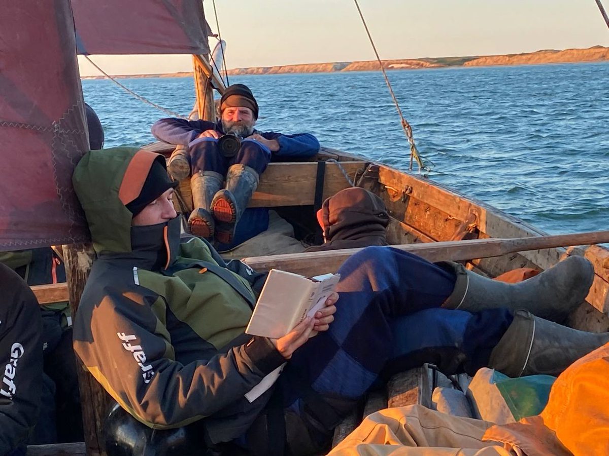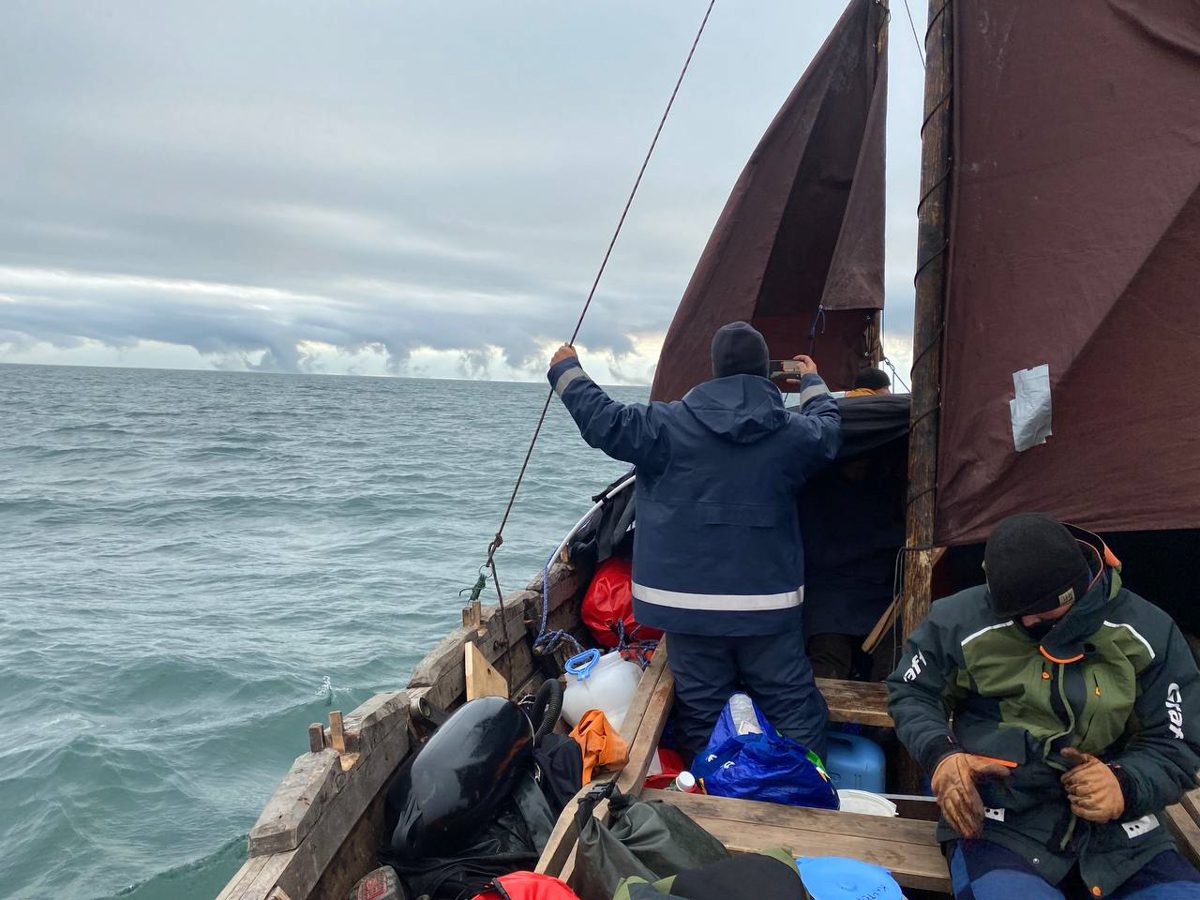 1630, закончили проходить Русский заворот. Тематическая часть 2 этапа ММХ: Мезенский залив – Канинский (Чешский) волок – Чешский залив – Святой Нос – Поморский пролив – Русский заворот – пройдены. Начинаем технический заход в Нарьян-Мар для смены команды. Переход составил 115 миль под парусом и на веслах.
