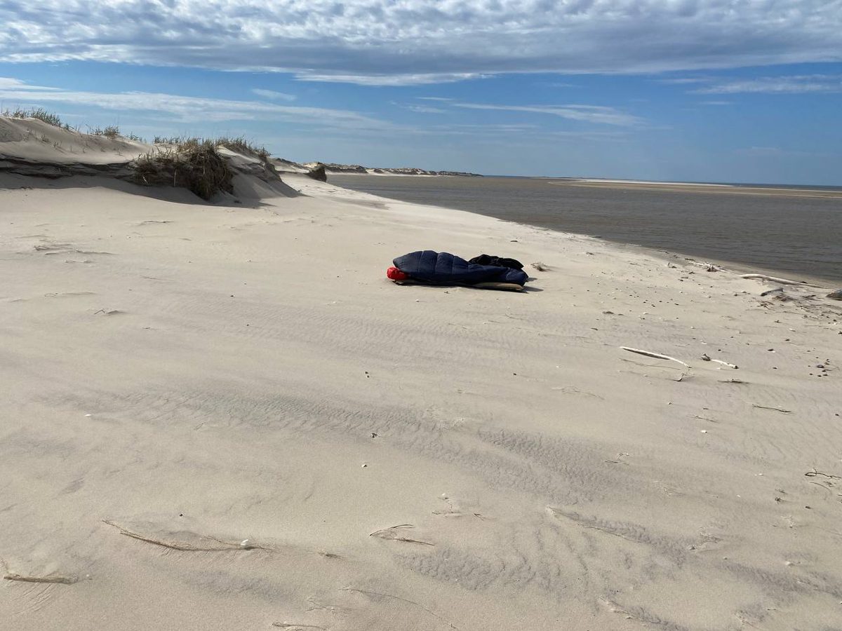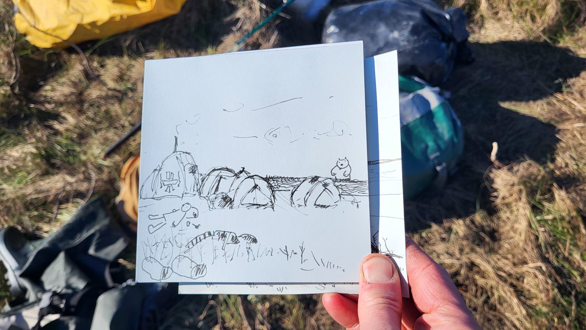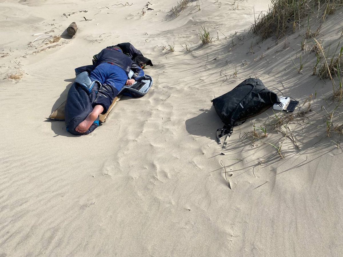 1500, наелись песка и рыбы. Идея лечь спать без палаток была так себе. Но и палатки на таком ветру не поставить.