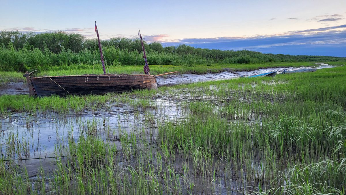 0600, перешли в Каменку. Это поселок напротив Мезени. Стартовать в море отсюда значительно легче. Нам нужно успеть выйти в залив на следующей воде.