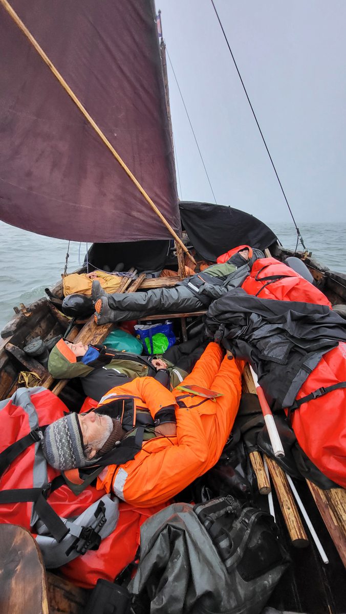 0600, выбрались в море. Идем под парусами, но – сели на мель. Идет отлив. Приходится ждать воды и отдыхать. Ночь прошла без сна.