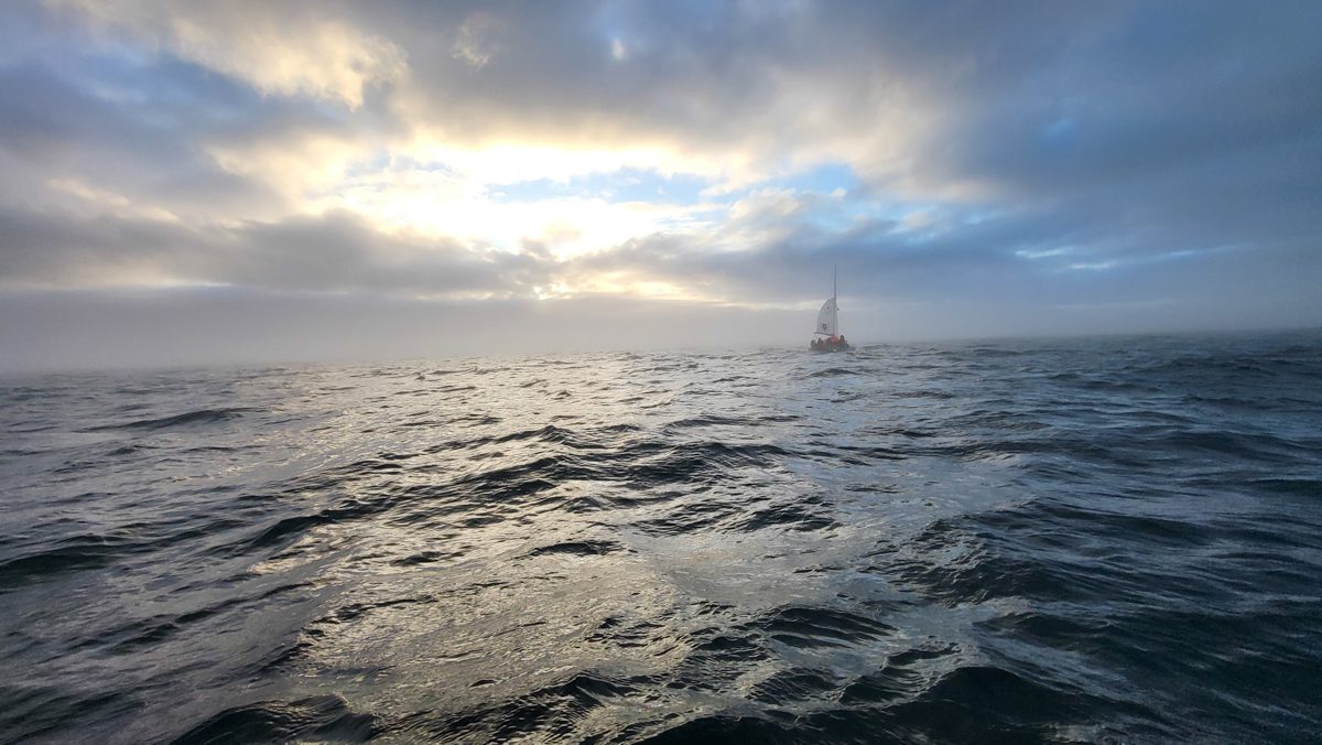 1040, дождь. Идем против встречного ветра вдоль Канинского берега. Несемся во все паруса.