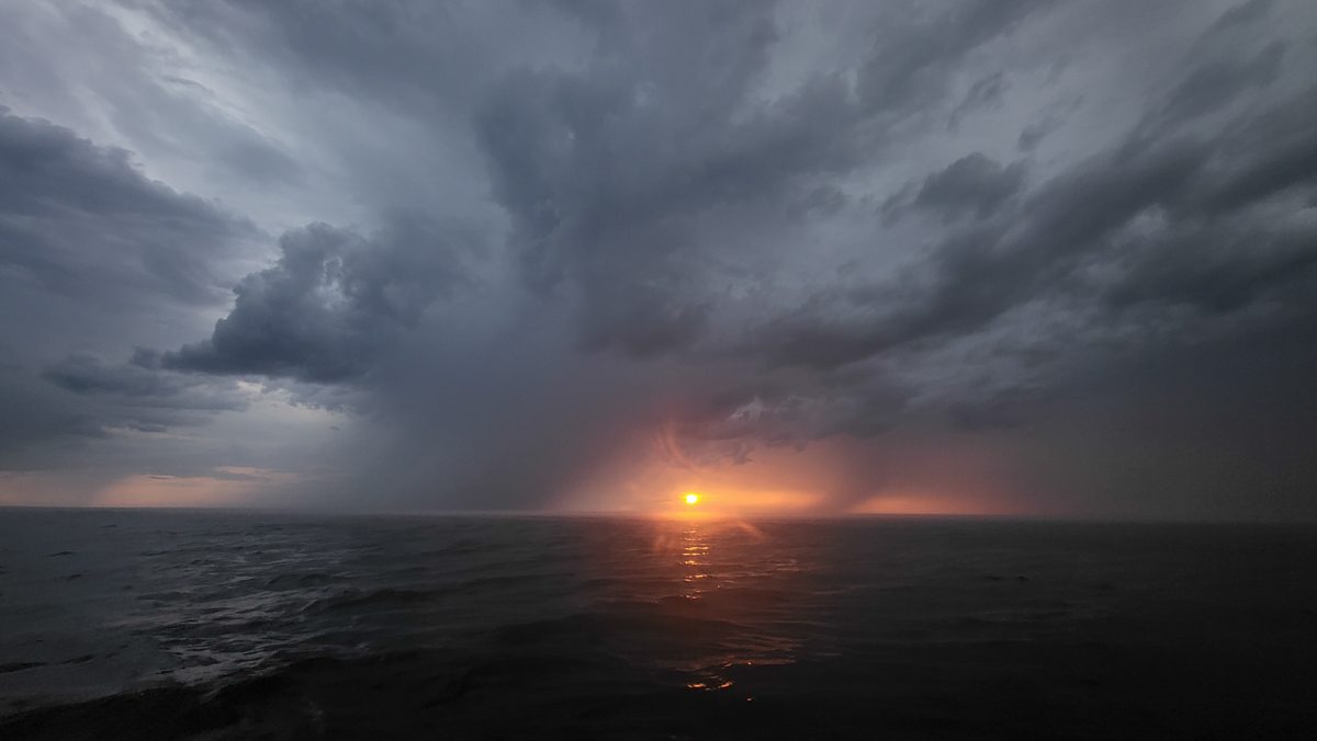 2040, фронт прошел. Слабый ветер от Юго-Запада. Огибаем Сингейский остров.