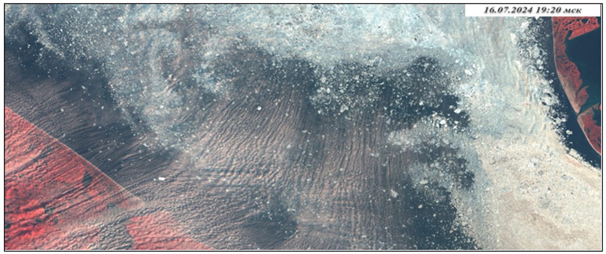 «Карское море. 15-17.07. Маловетрие, и основной процесс – это таяние льда. Жду, что к 17.07 промоет (уменьшит сплоченность) перемычку между двумя массивами, что в Байдарацкой губе и у Ямала. 18.07 ветер поворачивает к северному, слабый-умеренный. 19.07 северо-восточный умеренный, будет относить от берега. Перемычку должен расширить. В проливе Мутный Шар и в заливе Шарапов Шар лед растаял, и его вынесло. Далее маловетрие и повышение температуры воздуха. 23.07 очень тепло и выносной ветер.