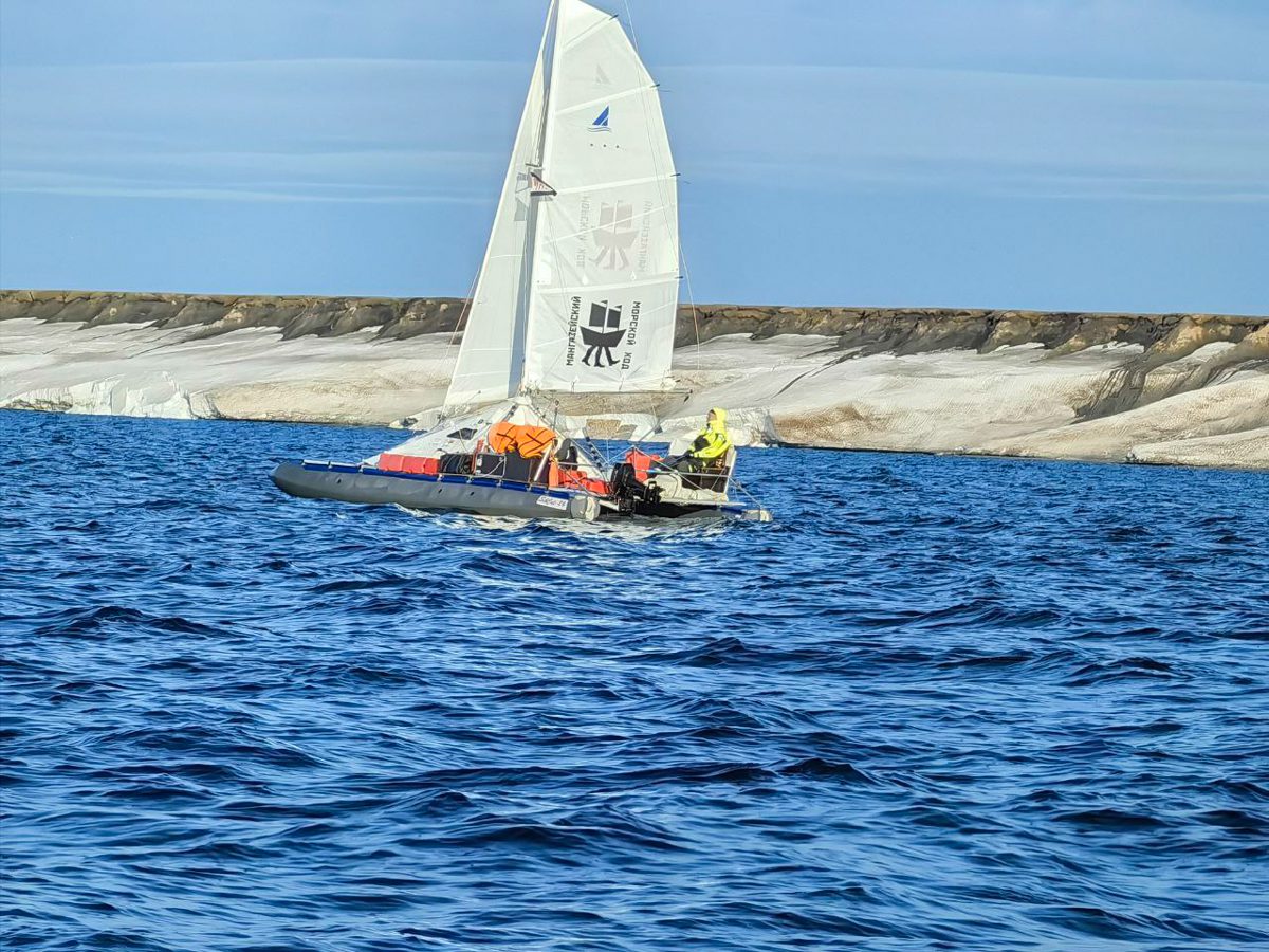 1200, огибаем мыс Андреева. Идем на веслах против легких порывов ветра. Встречаем одиночные льдины.