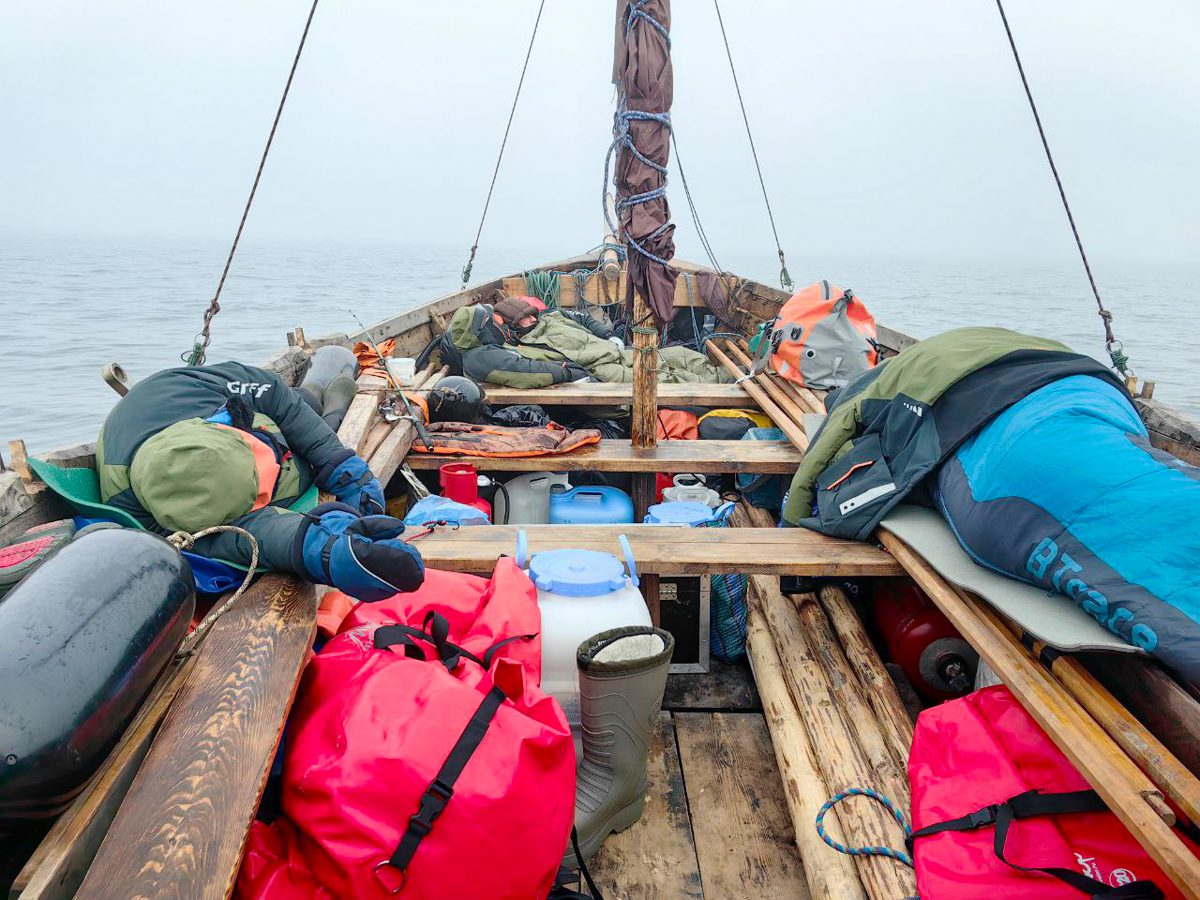 Наша экспедиция из Архангельска в Мангазею продолжается. По пути следования карбаса «Матера» и катамарана «Товарищ» капитан Евгений Шкаруба ведет судовой журнал, в котором записывает ход, условия и обстоятельства экспедиции в Сибирь. Чтобы читателям было удобнее следить за хроникой движения и жизнью экипажа, мы собираем бортовые записи в общий, поэтапный дневник похода – и сегодня публикуем его четвертую часть.