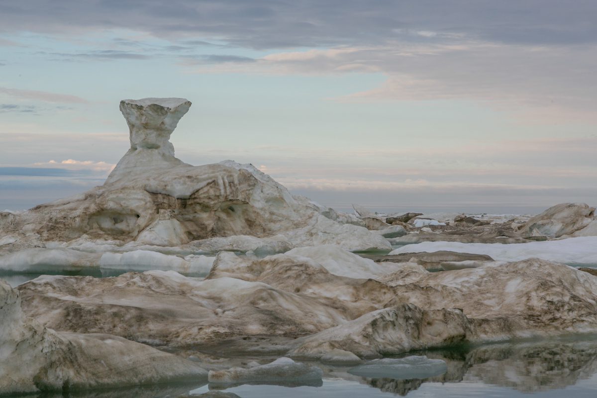 Все нас провожали: и тюлень, в гостях у которого мы были, и бесконечные скульптурные фантазии. Мы влюбились в ледовую навигацию, ледовые поля, эту тяжелую холодную воду и бесконечный день.