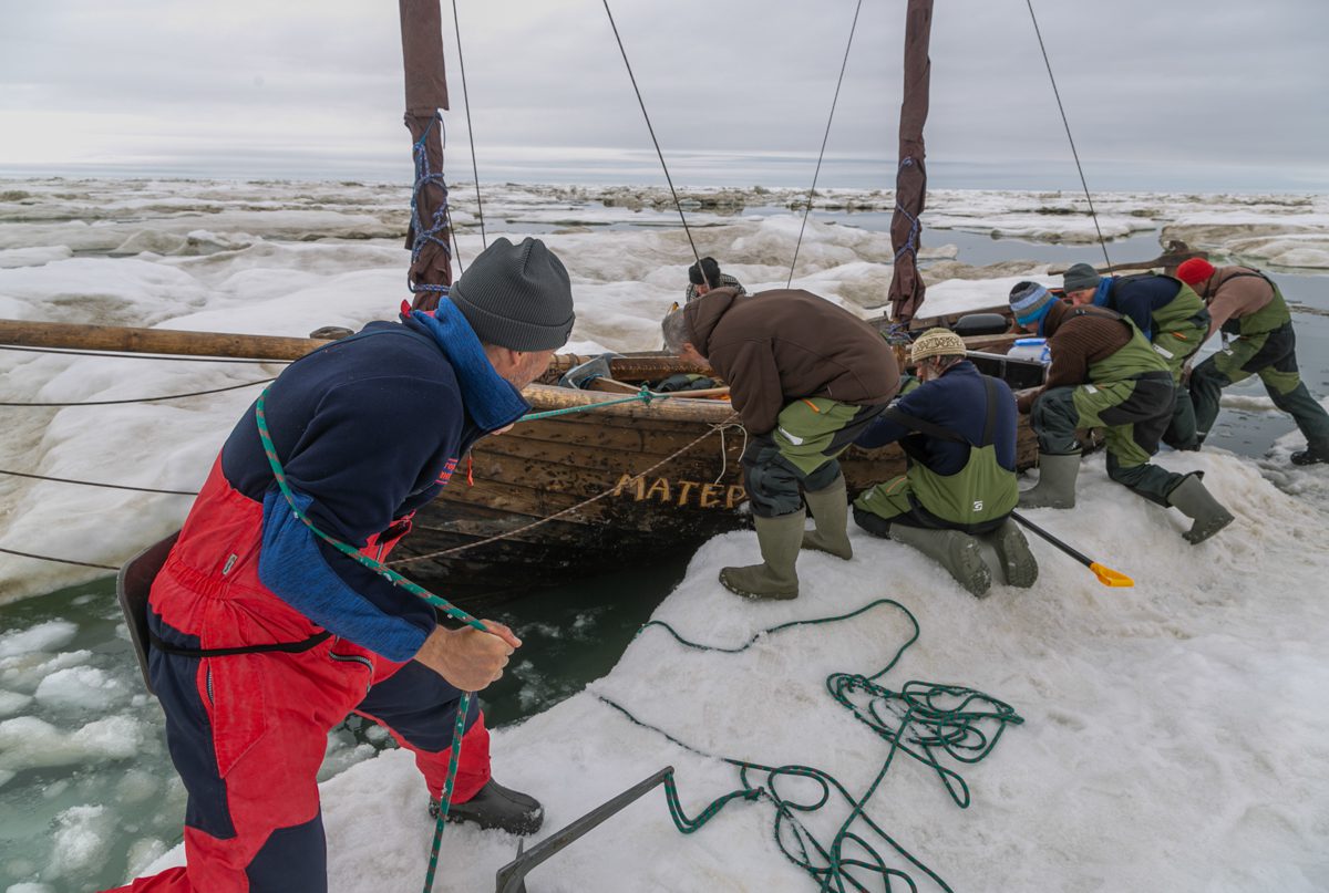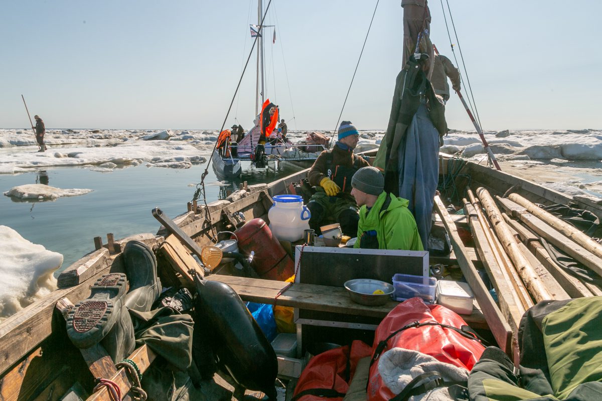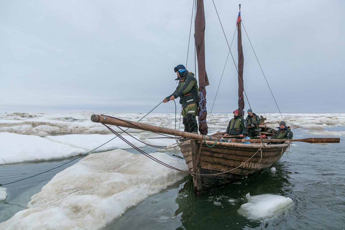 Наша экспедиция из Архангельска в Мангазею продолжается. По пути следования карбаса «Матера» и катамарана «Товарищ» капитан Евгений Шкаруба ведет судовой журнал, в котором записывает ход, условия и обстоятельства экспедиции в Сибирь. Чтобы читателям было удобнее следить за хроникой движения и жизнью экипажа, мы собираем бортовые записи в общий, поэтапный дневник похода, и сегодня публикуем одну из его самых захватывающих частей – описание шестидневного ледового плена в Байдарацкой губе.