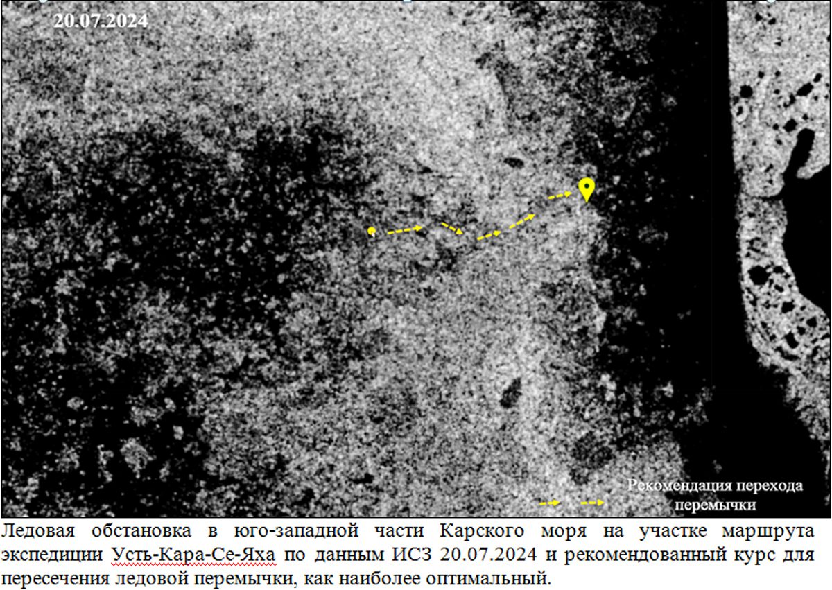 «Сегодня подарили радарный снимок, с координатами. Вам дорогу промывает. Остается перемычка километров на 8-10, но пока пойдете, лед по сплоченности уменьшится. Или еще день подождать.