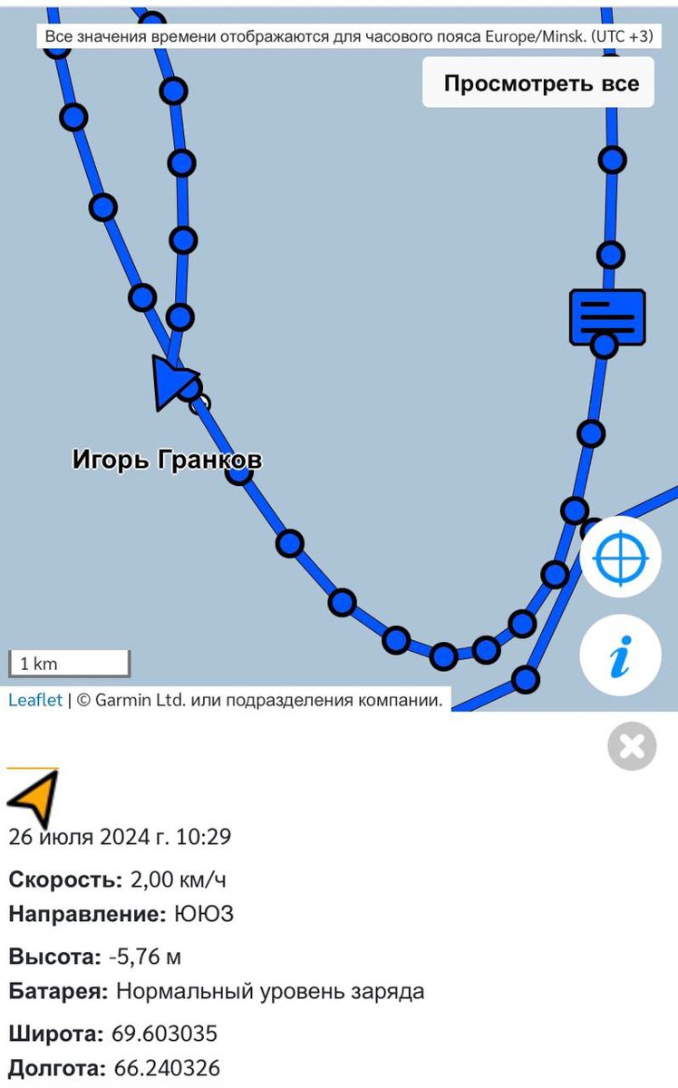 Это сухогруз «Лида», идет в Красноярск, тоже кружит, но судя по всему по своей воле, ДО льдов, в отличие от наших.