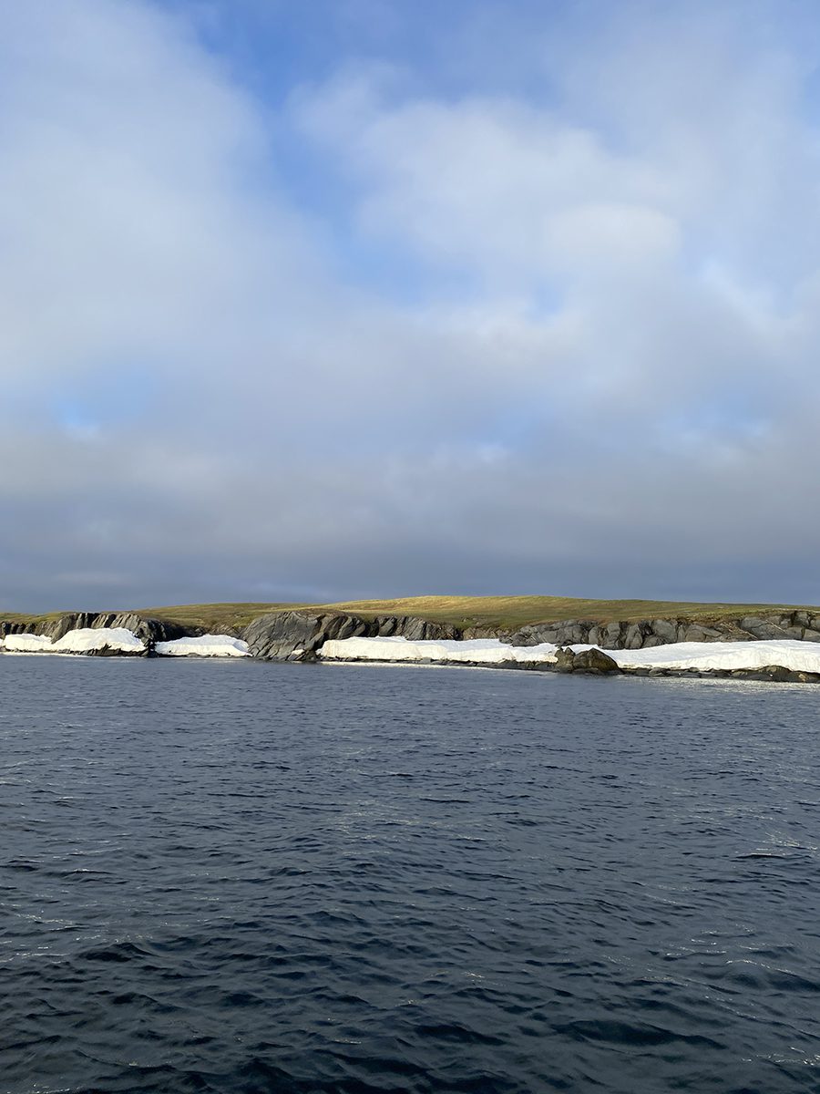 И ещё, когда мы вышли из Югорского шара – я тогда, собственно, сидел на руле ночью – а оставшиеся льды и снега лежали на берегах, как зефирки, такие вкусные и красивые. И в два часа ночи светит яркое солнце, и ты идёшь по ветру, а вокруг тишина. И зелёные травы тундры, и вот эти зефирки.