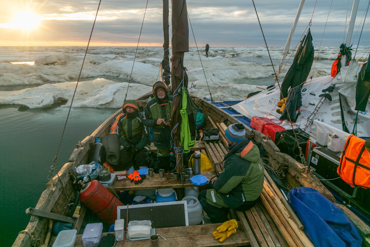 Правильно Максим сказал, что сначала мы ломились не туда, куда надо. Потом мы поняли, что в этой дрейфующей массе есть своё движение: вода поднимается, льдины расходятся, и в этот момент мы можем проскочить дальше. Мы запускали дрон, смотрели, что он покажет, сравнивали снимки между собой и за семь дней постепенно выкарабкались.