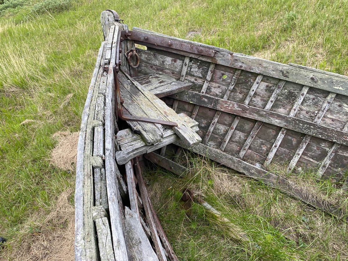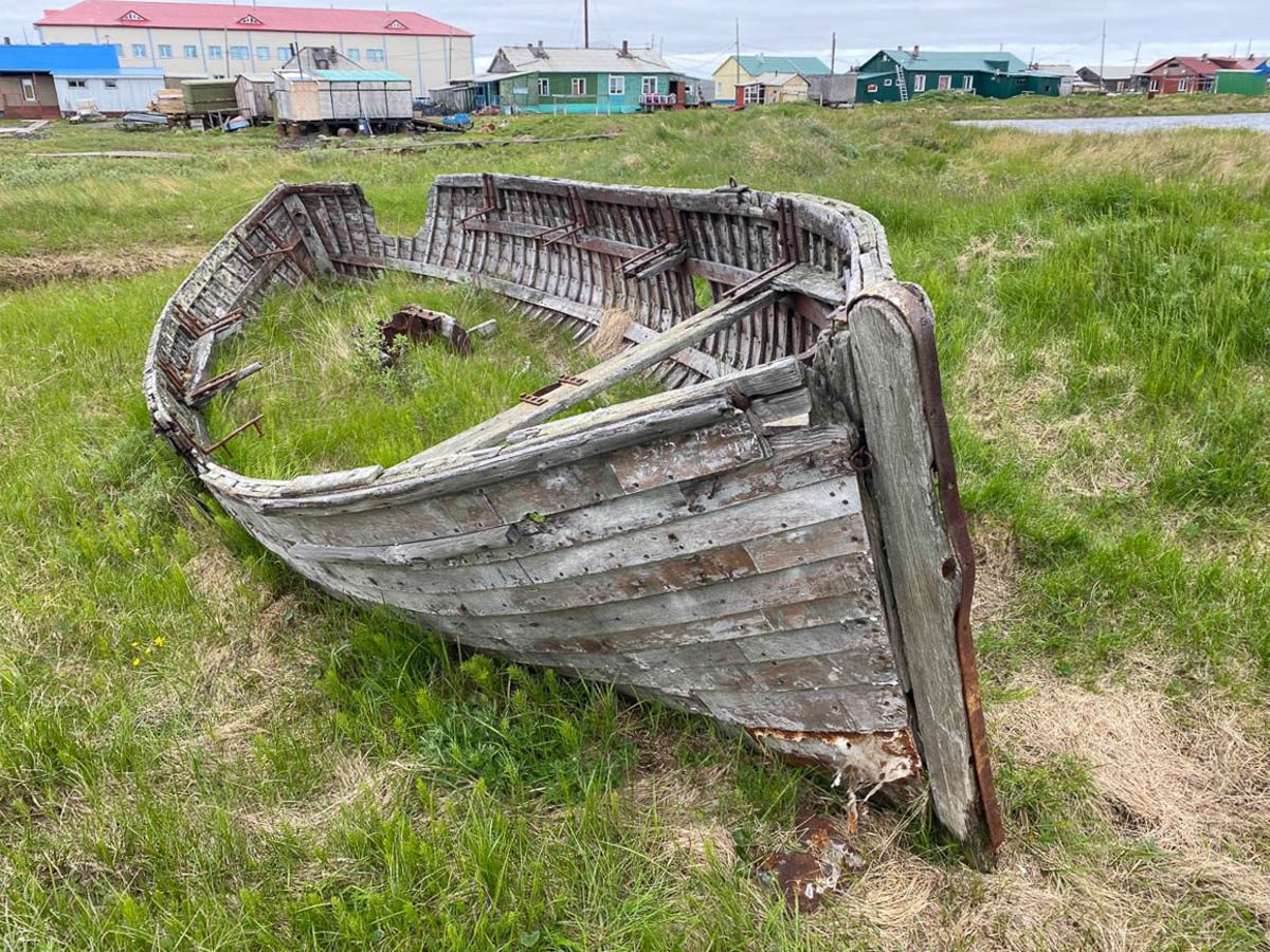 Там же, на берегу, мы обнаружили какой-то старый вельбот – вроде клинкерный, фанерный. Явно не Соломбальской постройки, но фабричный. Интересно, откуда он там взялся.