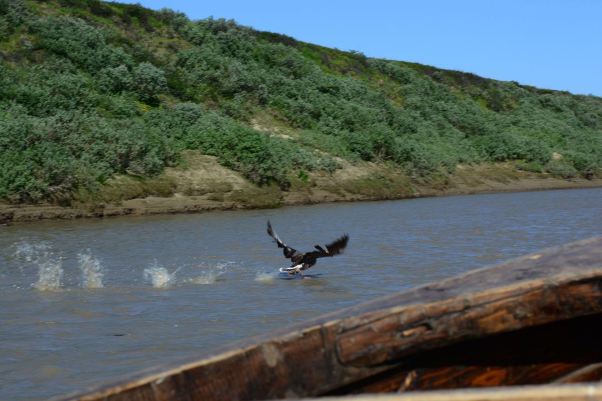 На Ямальских реках гнездится огромное количество птиц, прилетающих туда выводить потомство. Лебеди, гуси, утки – кого только там нет! Так вот, там мне посчастливилось сфотографировать краснозобую казарку. Это птица, которая занесена в Красную книгу, ей присвоен статус исчезающего вида, она изображена на гербе Таймырского автономного округа… На карбасе я всем прожужжал уши этой птицей, и был очень счастлив тем, что мне удалось её увидеть.