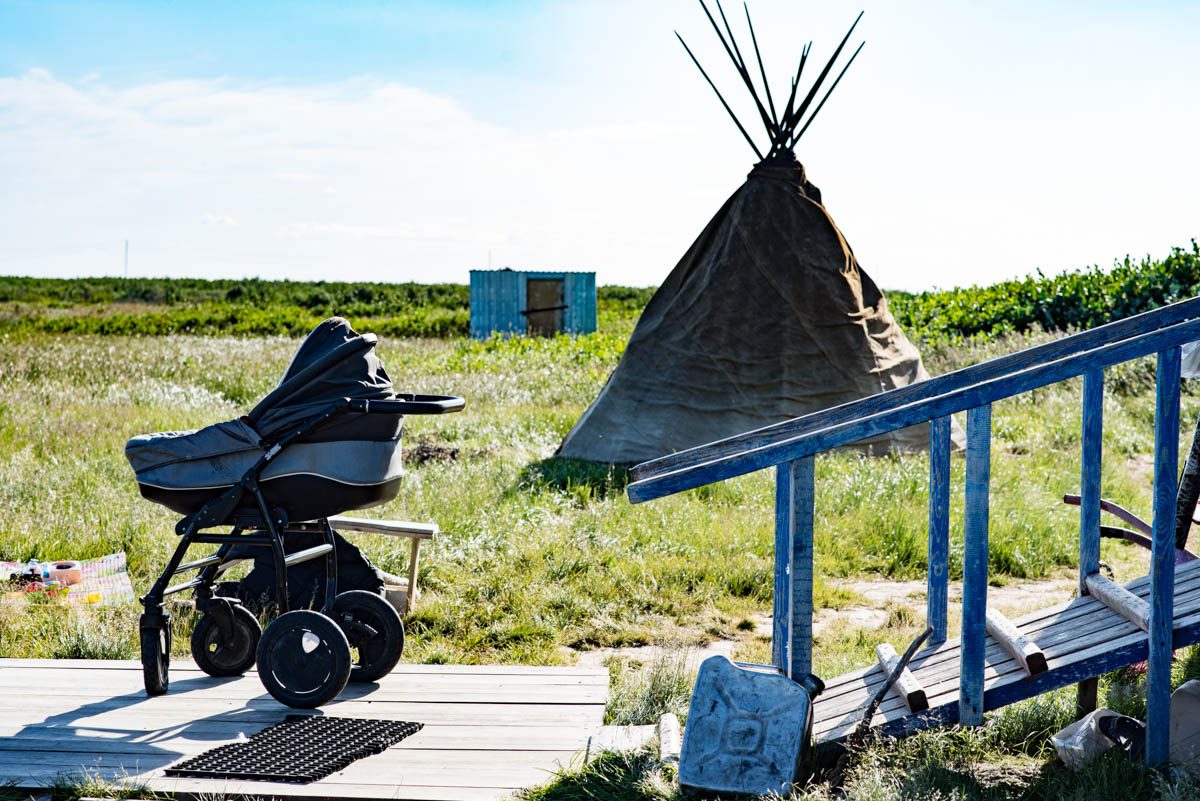 Например, посёлок Антипаюта построен в таком неудачном месте, которое каждый год затапливает. Так вот, строятся там на огромных санях. И это не маленькие балки кочевников-оленеводов, которые изначально делаются такими, чтобы их легко было перевозить – а действительно огромные строения. Они не предназначены для кочевания, но в случае чего их можно куда-нибудь оттащить трактором, потому что земля под домами людям не принадлежит. Эта подвижная часть посёлка стоит вдоль реки и имеет местное название «Бродвей». А летом там же ставят «дачные» чумы, в которых живут и ловят рыбу.