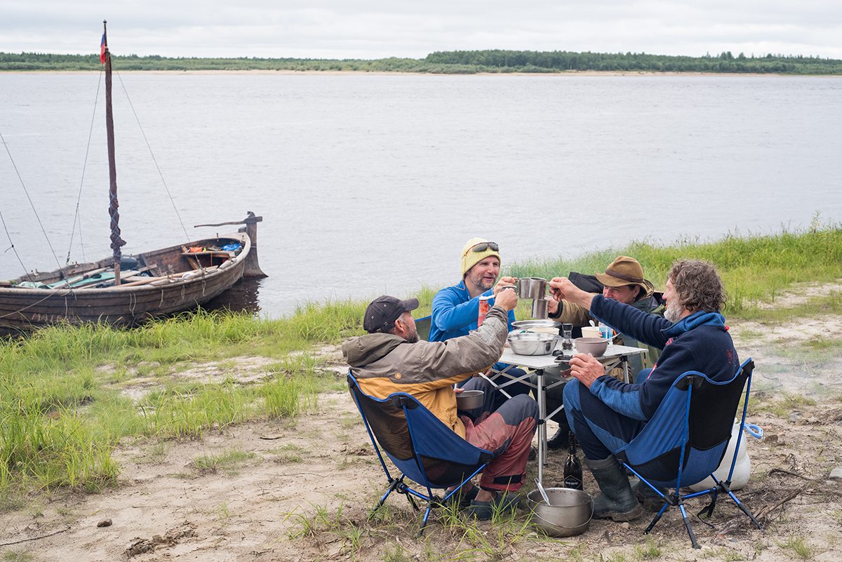 На последнем этапе нас оставалось всего четверо, то есть, большую часть времени на «Матере» и «Товарище» было по два человека. Сам пятый этап, по сути, состоял из двух частей: морской – это Обская и Тазовская губа, где был установлен рекорд скорости в 10 узлов, и речной, где мы в основном тащили карбас бечевой вдоль берега. Проблему составляло довольно сильное встречное течение. При хорошем ветре мы дошли бы от Тазовского до Мангазеи за два-три дня, а так это заняло у нас неделю. И берега там не всегда приятные – где-то есть песочек, а где-то – няша с корягами.