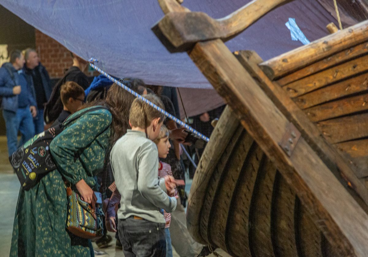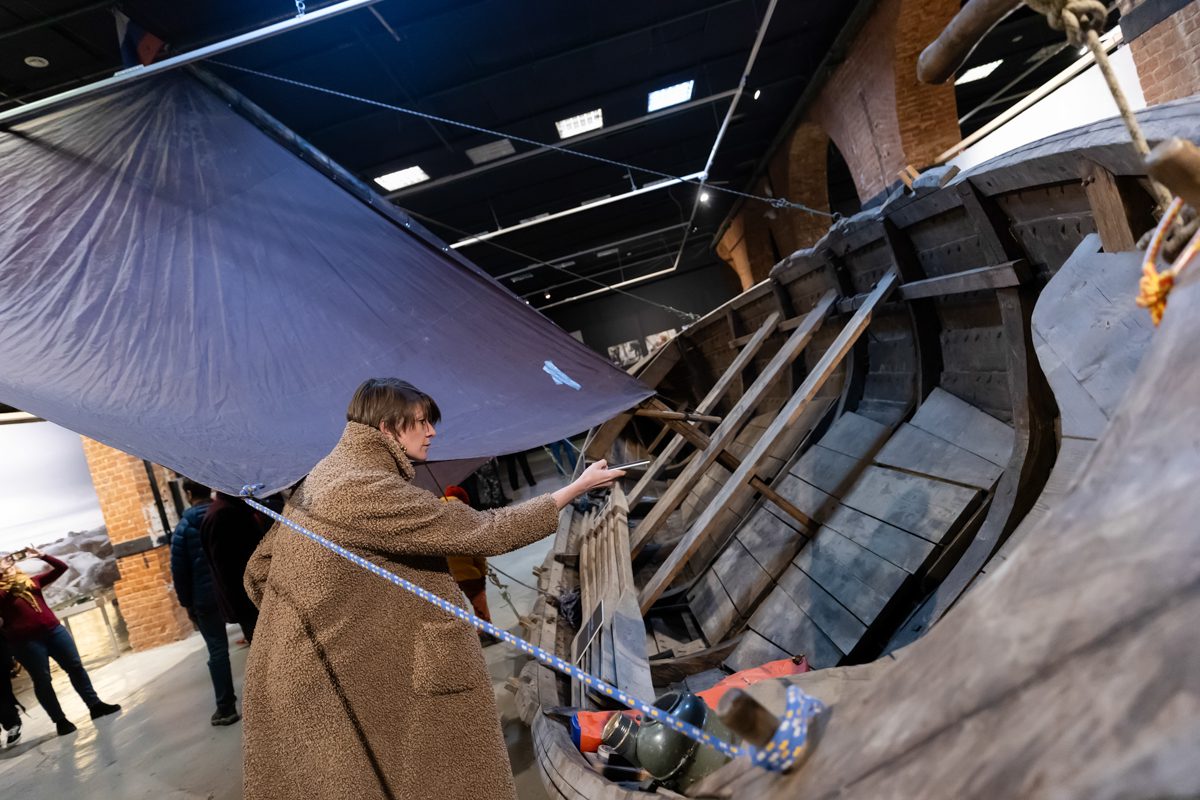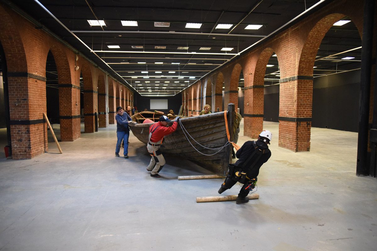 Карбас на выставке можно потрогать, понюхать (он пахнет смолой), сфотографировать и даже забраться под него (некоторые, к нашему восторгу, так и делали — надеемся, что таким образом гостям выставки удалось получить исчерпывающую информацию о лодке и в полной удовлетворить свой живой исследовательский интерес).