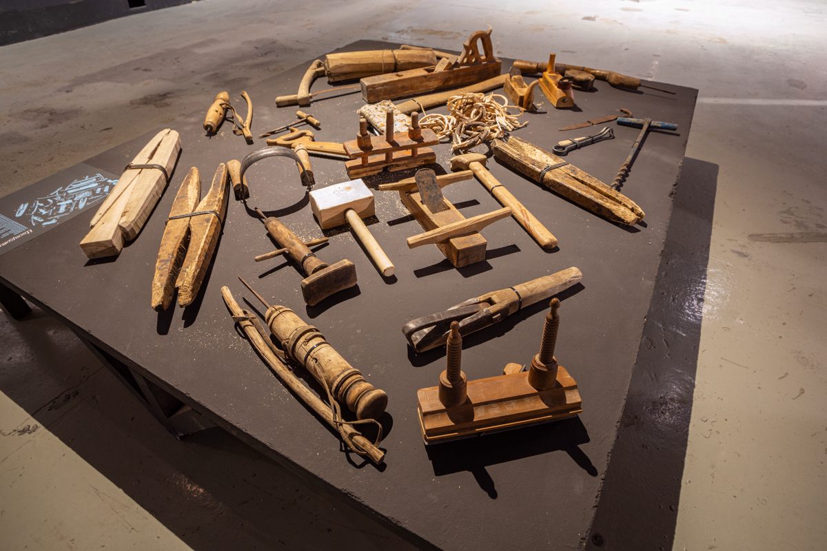 Кроме того, в экспозиции можно увидеть большую коллекцию предметов поморского быта и промысла, представленную Максимом Тумановским — участником второго этапа экспедиции «Мангазейский морской ход», а также коллекцию плотницкого инструмента верфи Товарищества поморского судостроения.