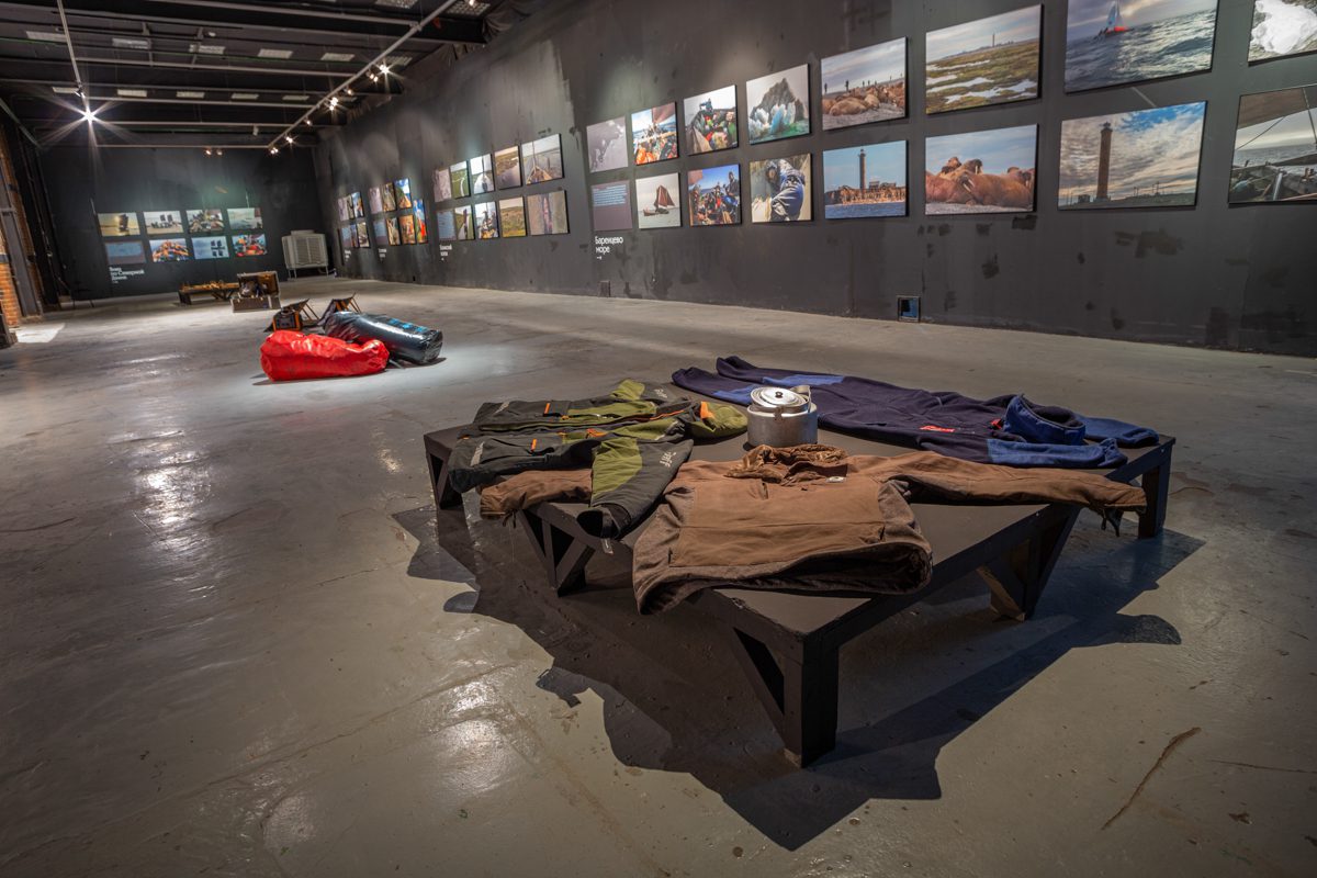 Также на выставке представлена значительная часть обмундирования и снаряжения экспедиции: брендированные экспедиционные флисовые комбинезоны от компании 1853 — совмещающие в себе функциональность, прочность и нежность; элегантнейшая одежда от DrakeBrake; костюмы-поплавки Graff — хит экспедиции, без которого мы бы замерзли и вообще не были бы счастливы во льдах;