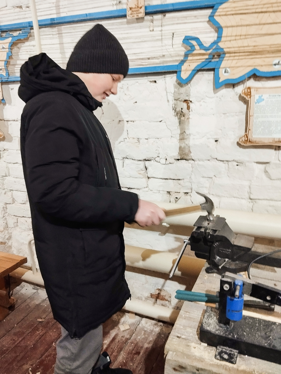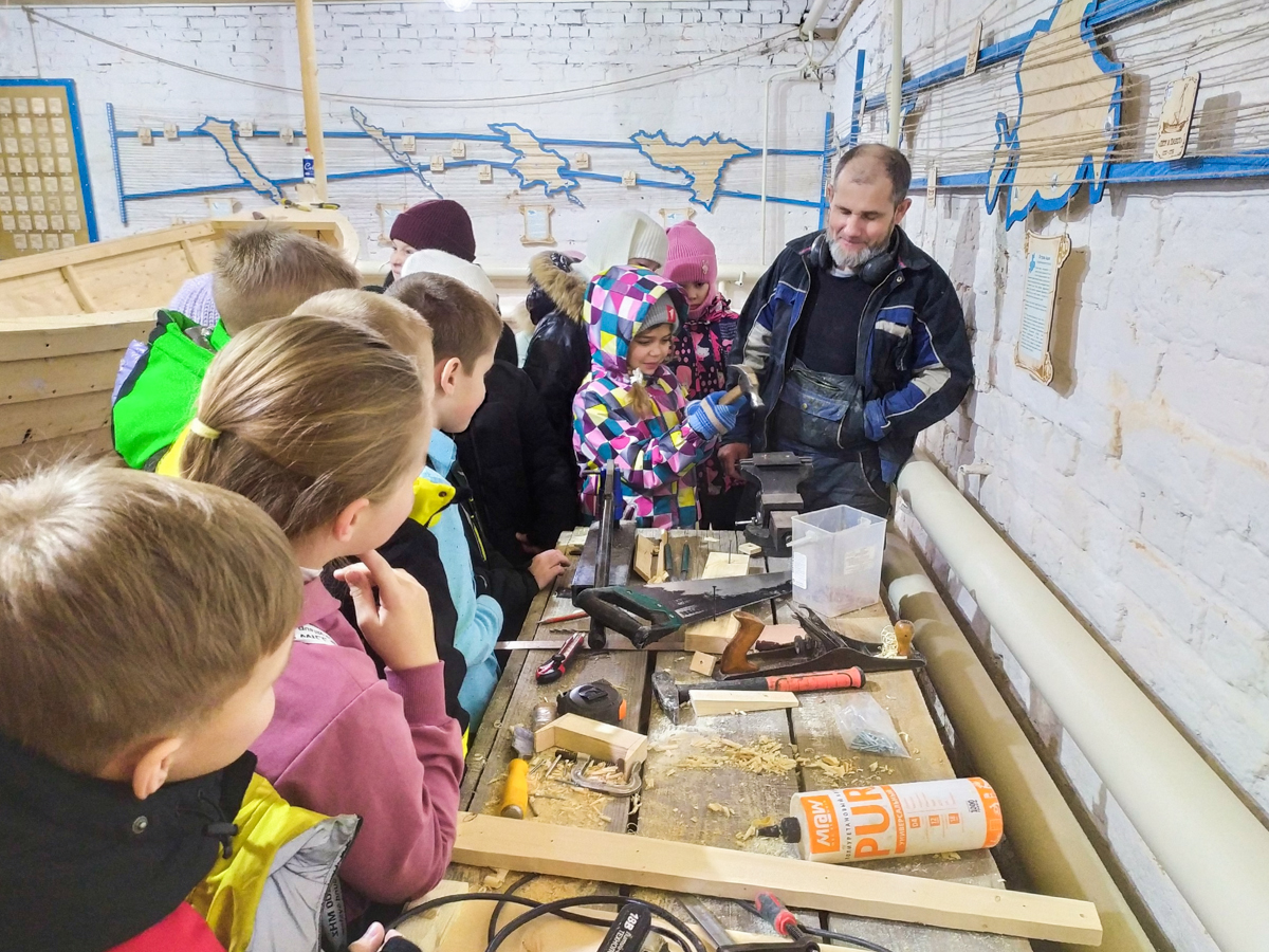 К Тёме в Музей мореходов водят детей: учеников всех Тотемских школ, которых в городе три штуки. Тёма стоически выдерживает такую популярность. Он, конечно, больше всего любит работать сам, один, молча, в наушниках, без помощников, волонтёров, журналистов, операторов и зрителей. Но с нами он крепко влип: попал на дико медийную верфь, и теперь снимается в кино, ведёт экскурсии, рассказывает детям про судостроение, учит их делать медные гвозди и скромно переносит свою славу.