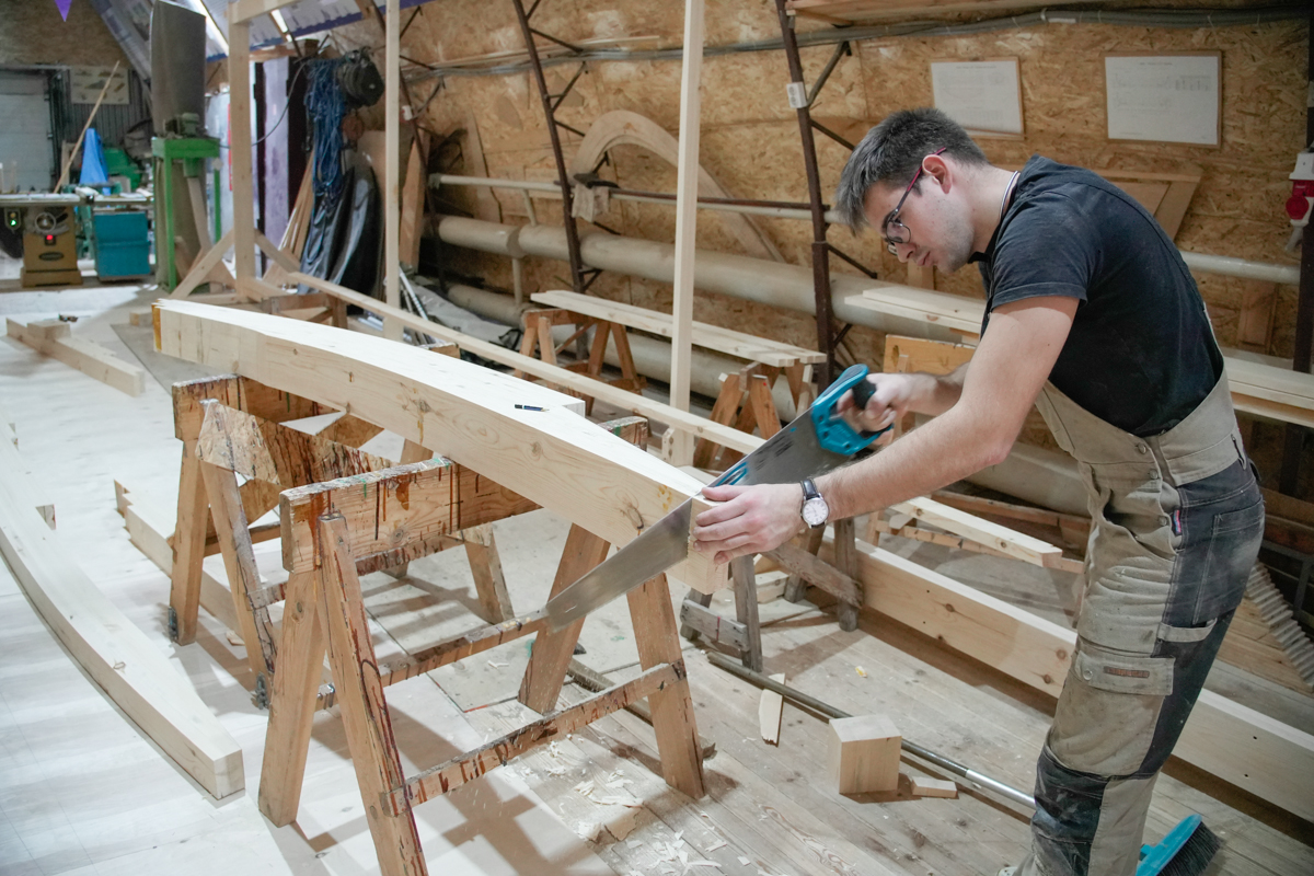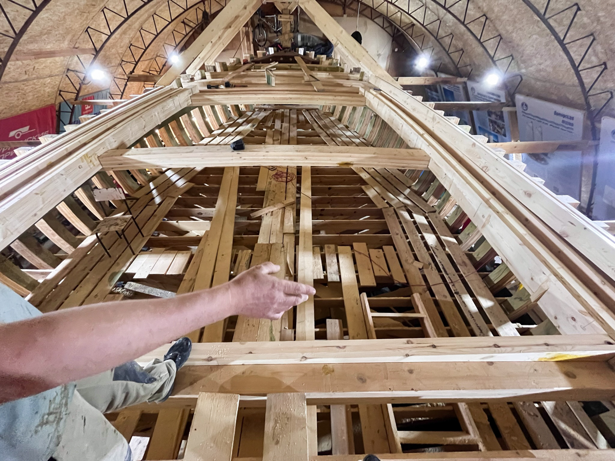 Артём в Тотьме вовсю шьёт карбас. Много нашил: уже и шпангоуты, и брештуки, и планшири, и привальные брусья, и слани.