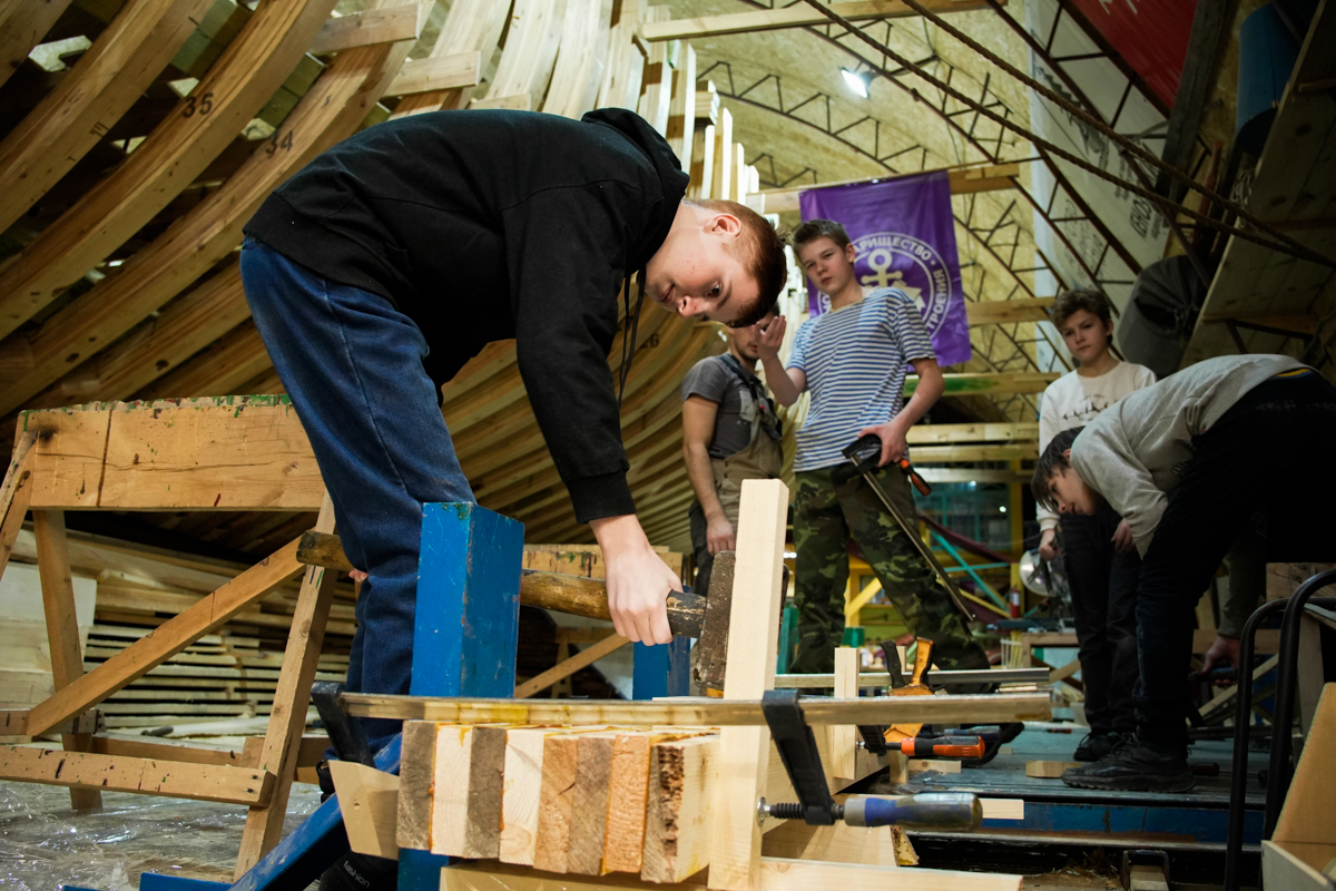Много новостей от проекта «Ёла». Настолько много, что о них мы будем писать отдельно, а здесь скажем в самых общих чертах: дети на верфи сильно освежают рабочий процесс, делают большие успехи и очень радуют нашего фотографа-оператора.