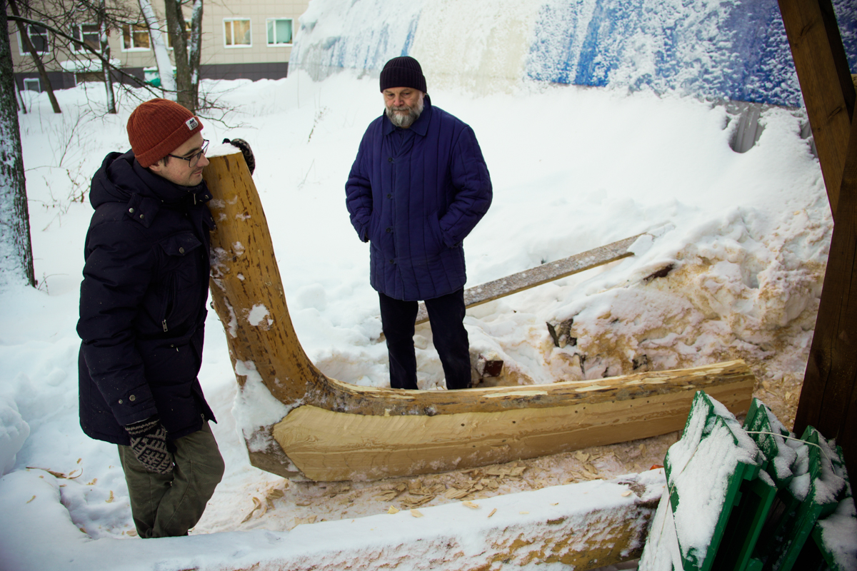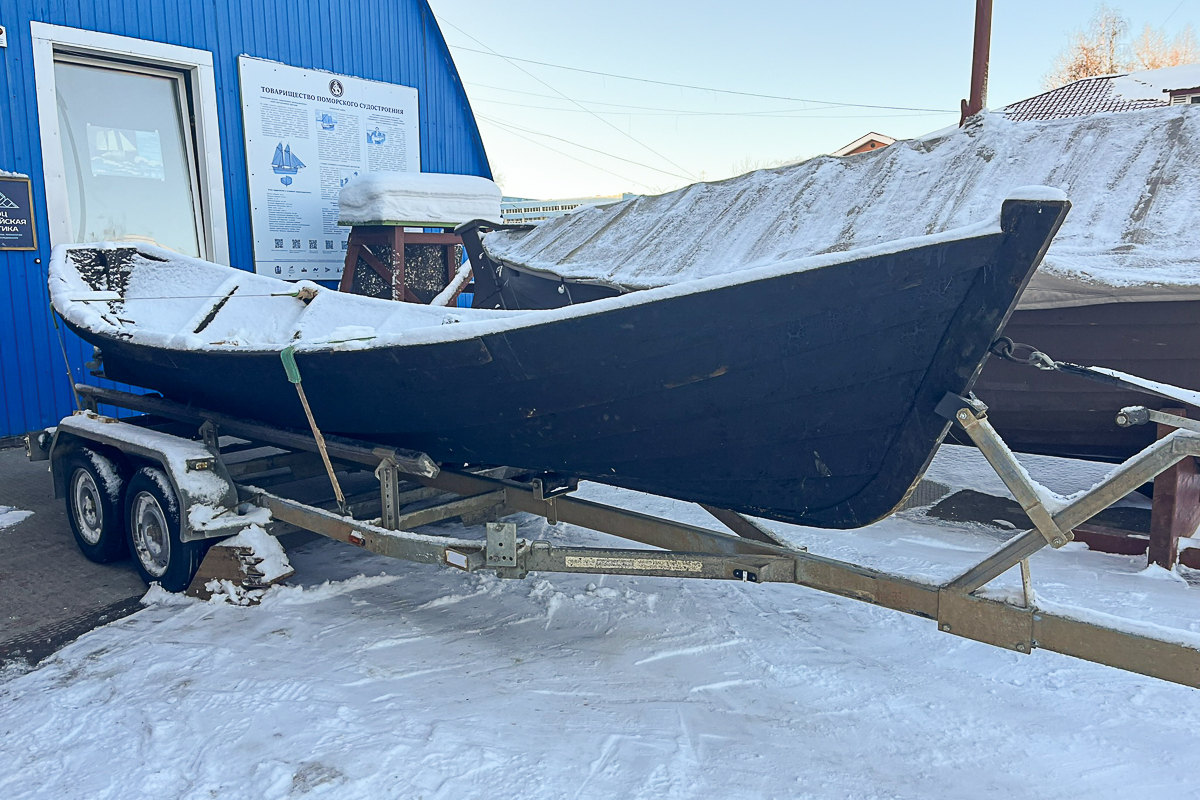 Миша совершил невероятно выгодную сделку на Авито, а именно — прикупил эдакий старый-новый карбасок в деревне Защелье, что недалеко от Юромы. И привёз его на верфь по пути из Азаполья.