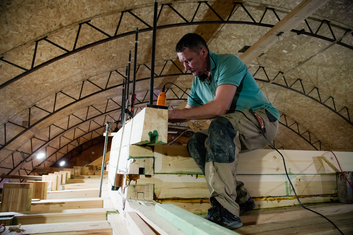 Лёша продолжает строить рубку, в которой он будет жить посреди Арктических вод.