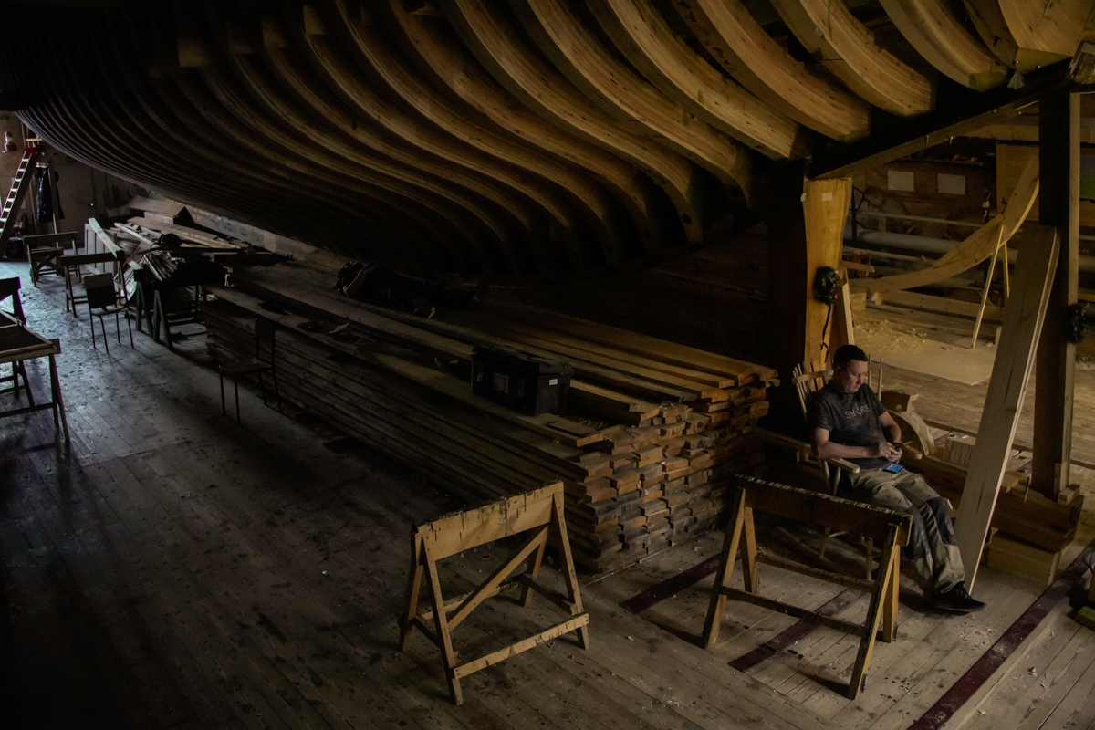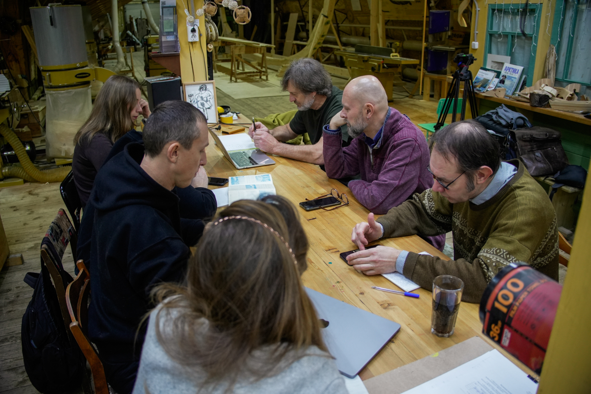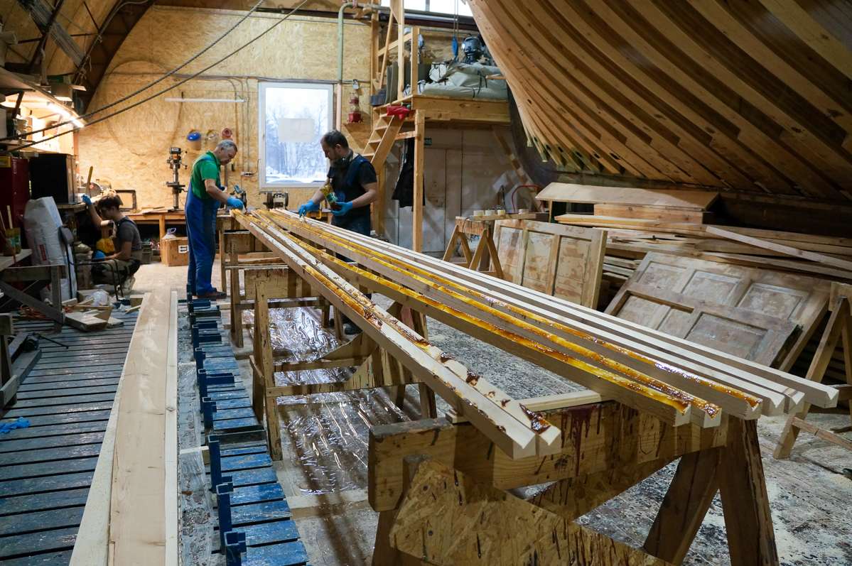 Кроме Полины к проекту «Ёла» присоединился друг и соратник Игорь Логинов — руководитель «Арктического музея лодки» в прошлом — ученик нашей «Лаборатории деревянного судостроения», а в настоящем — опытный судостроитель и создатель фанерной шняки и карбасов. Будем перенимать у Игоря бесценный опыт работы, собственно, с фанерой.
