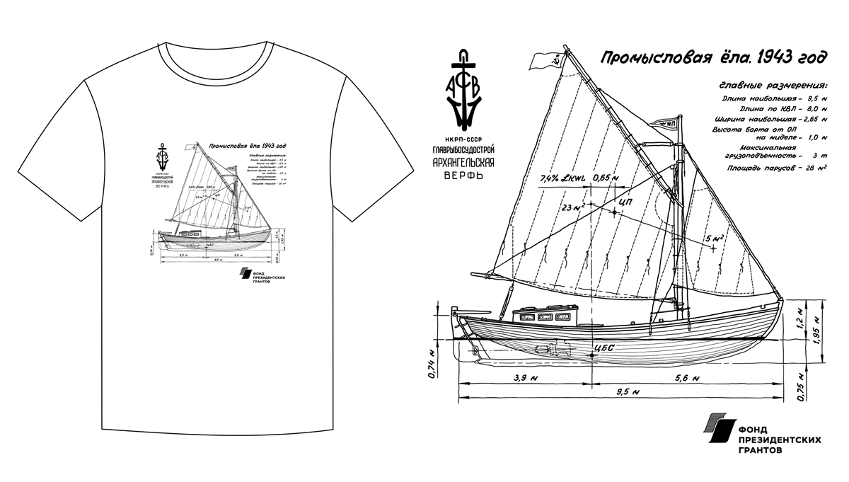 Ещё у проекта «Ёла» появляется свой мерч. Эскиз футболки с ёлой проекта 1943 года сделал Игорь Дробиленко.