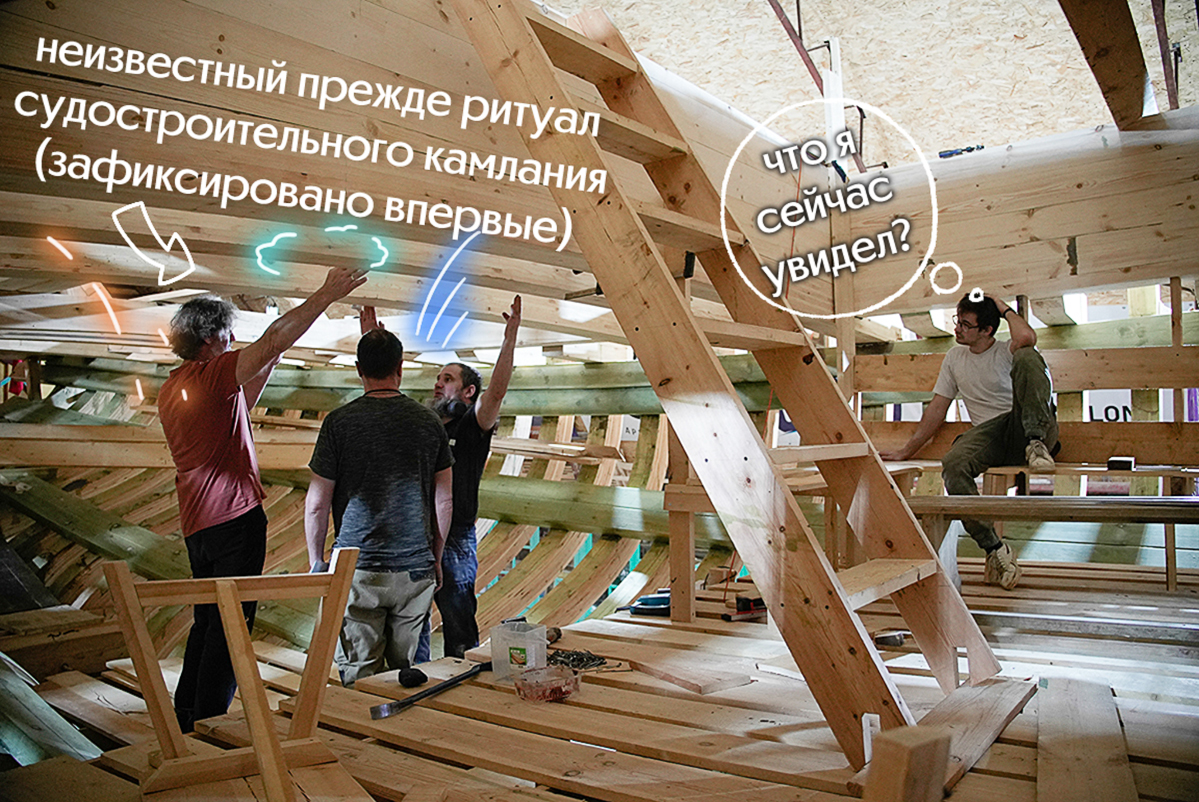 Нельзя сказать наверняка, что происходит на фото #1, но мы склоняемся к тому, что на нём запечатлен древний и прежде никем не описанный ритуал судостроительного камлания. Теперь вы его видели.