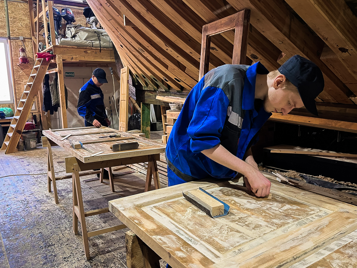 Артём чинил старенько-новенький карбас из Защелья (когда не выгораживал помещения шхуны и не занимался ни ёлой, ни турбо-карбасом);