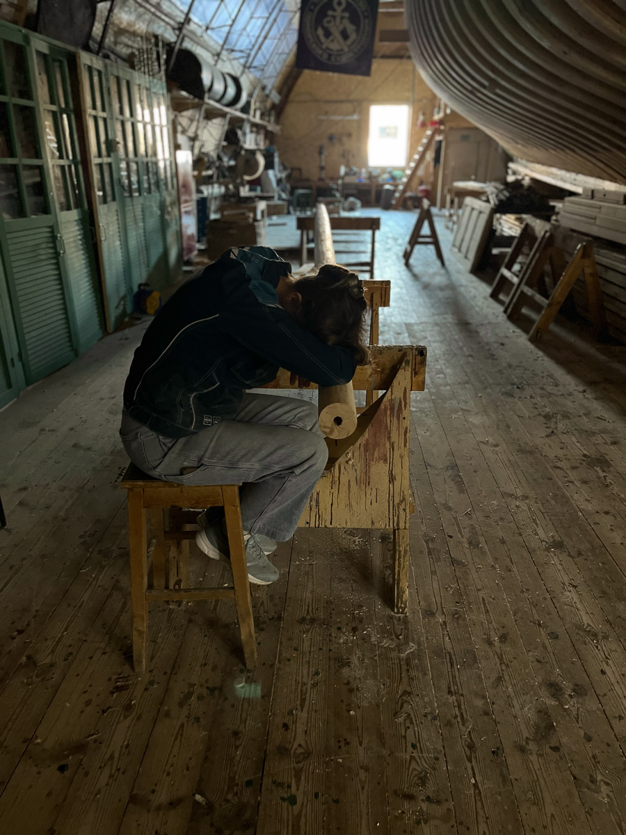 Кроме того, к нам пришли свежие студенты-практиканты. К Полине (медитативно шлифующей мачту и на ней же дремлющей в обед), добавились Славик, Олег и Никита.