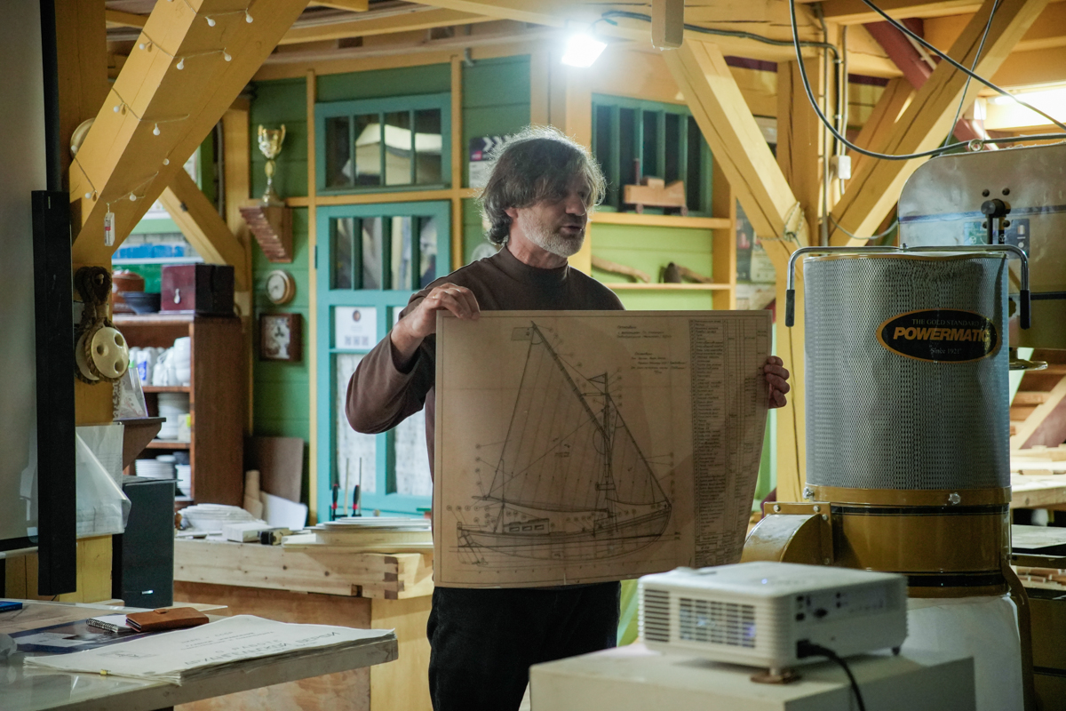 Лазер механикова взгляда периодически обжигает их так, что они вздрагивают и начинают работать гораздо усерднее, чем за минуту до этого. Случайно попавший в траекторию луча Игорь Логинов вздрагивает тоже — встаёт по стойке смирно, отдаёт честь и на всякий случай обещает что-то убрать или исправить. «Спокойно, я смотрю не на тебя» — отвечает механик. Если студенты пригляделись и держатся настороже, то механик меняет дислокацию и следит за ними со шхуны, сверху вниз — чтобы не филонили, не болтали, держали стамески правильно и не разводили беспорядка.