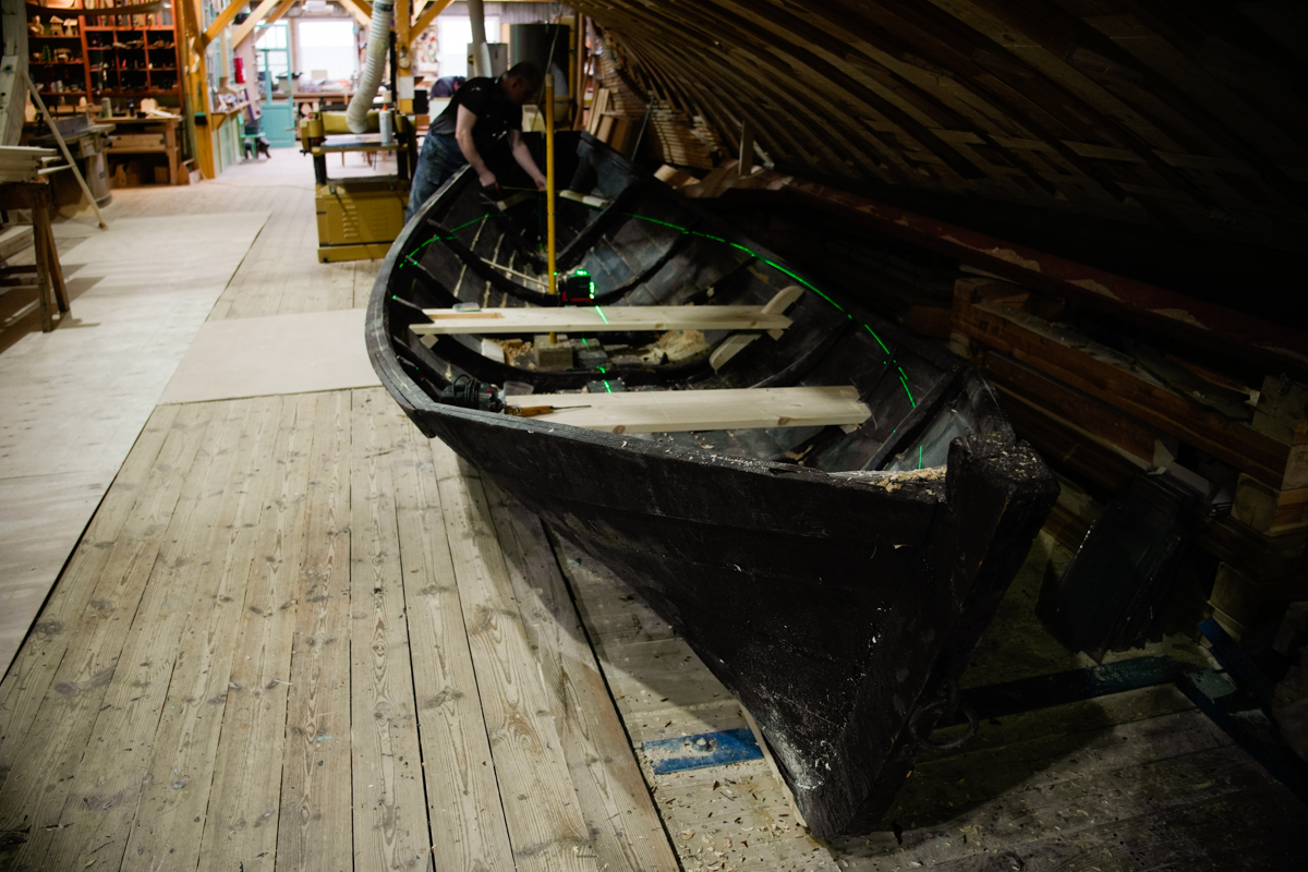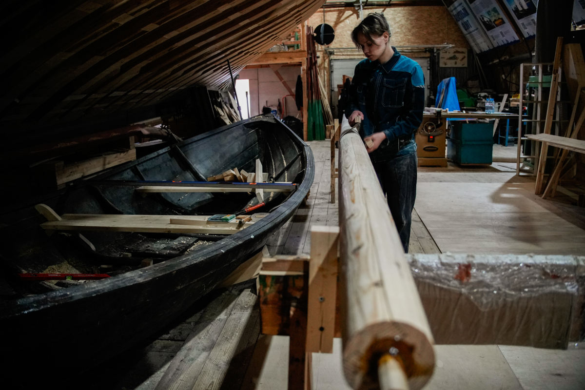 Ваня Горбунов продолжал строить карбас для карбас-музея и дошёл в этом святом деле до третьего набоя и этапов с мхом, живицей и вицей (всё это пахнет копчением и лесом).