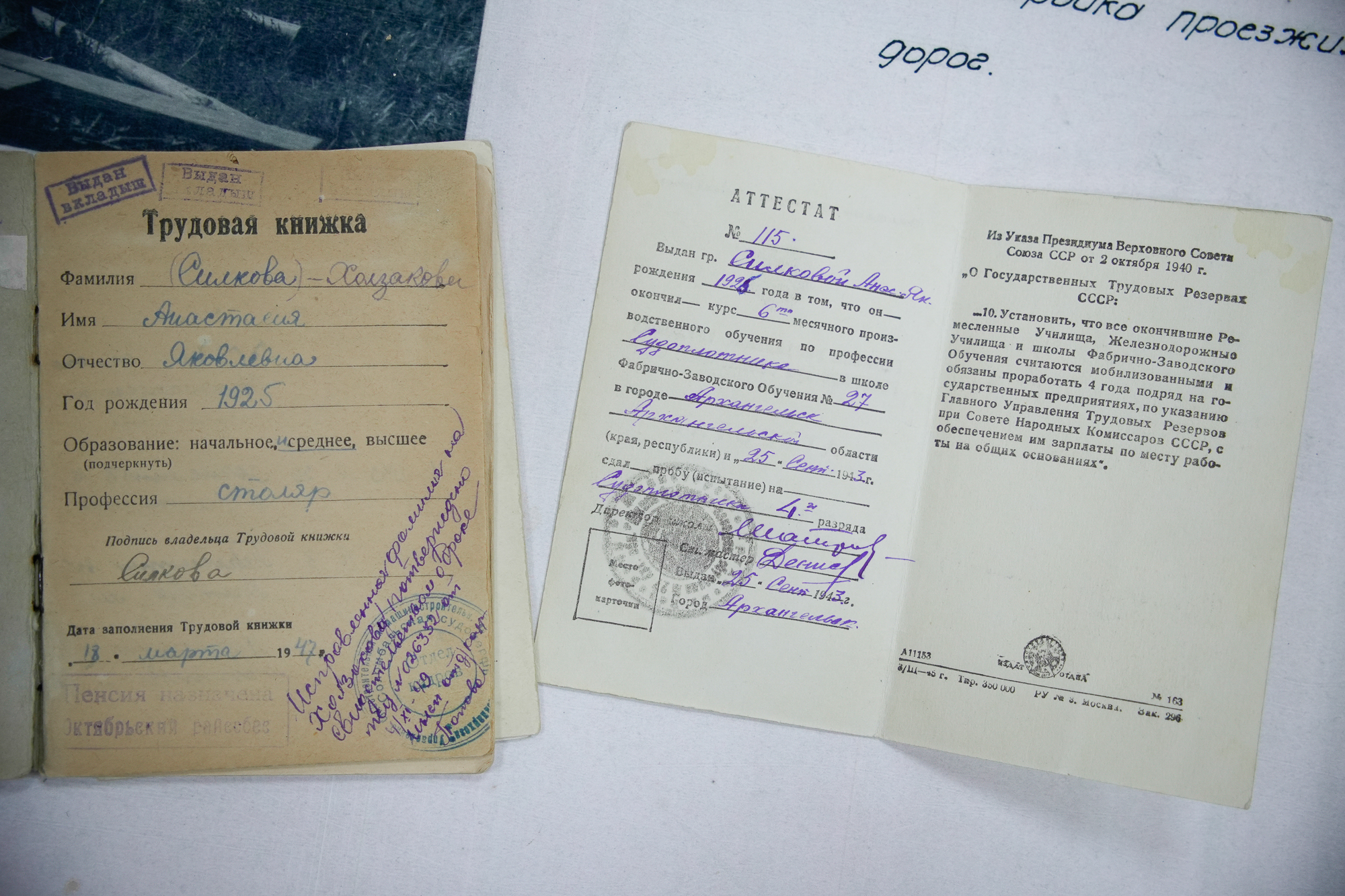 Анастасия Яковлевна родилась в 1925 году, а в 17 лет в рамках трудовой мобилизации была призвана на строительство ёл в Архангельск из Верхнетоемского района — и всю жизнь проработала на Соломбальской судоверфи.