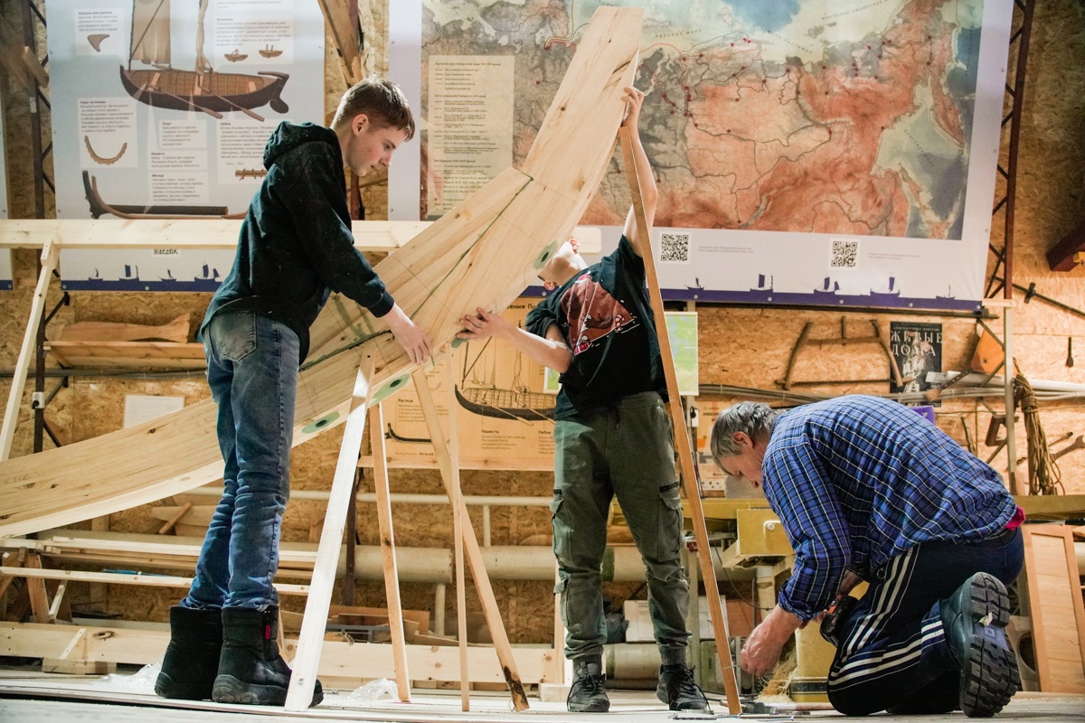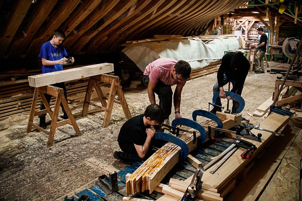 Каждую из деталей ребята выклеили, выгнули и выстрогали с мастерами верфи Товарищества поморского судостроения — а потом собрали. Всё своими руками!