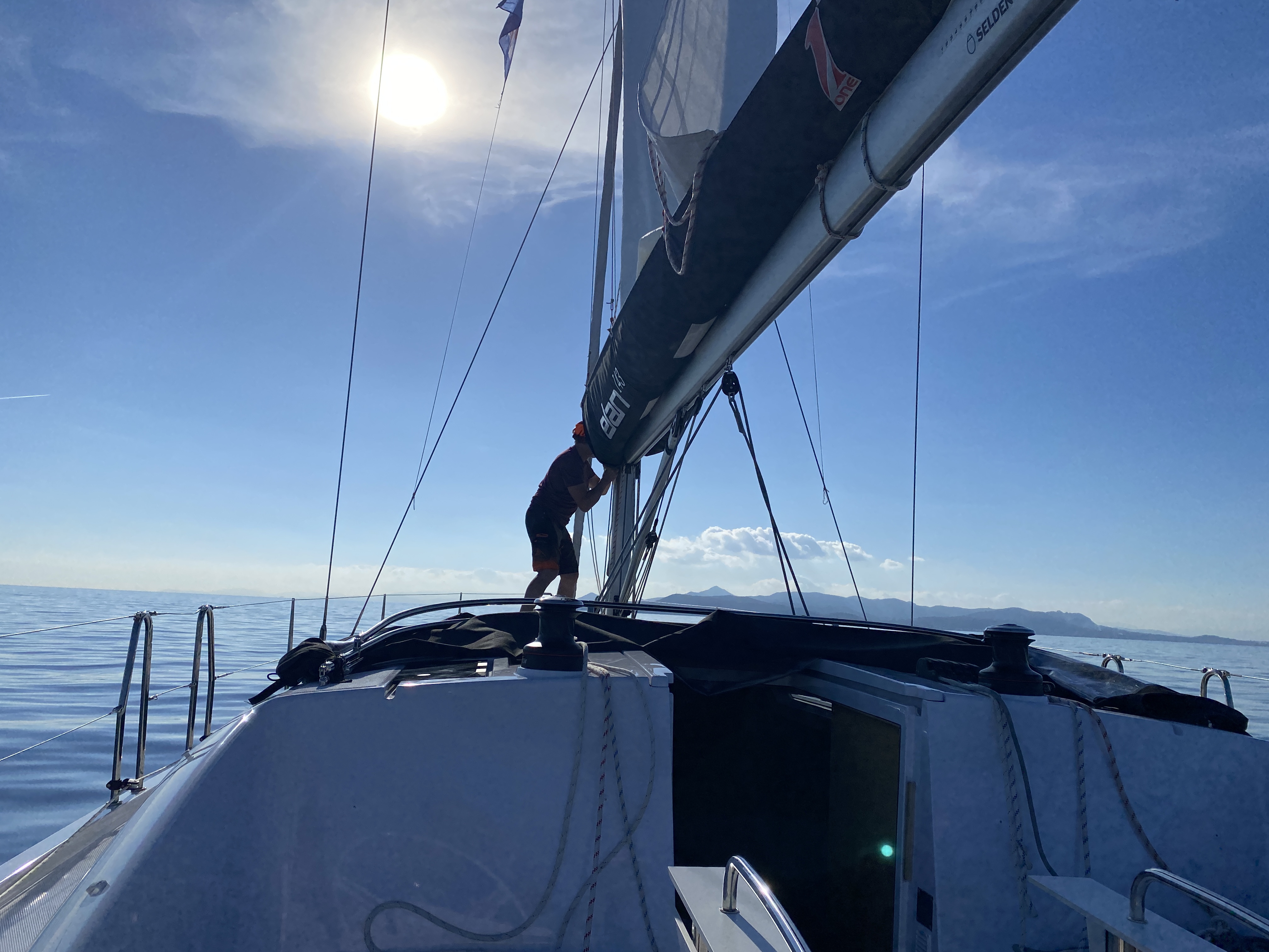 1030, вышли с Спецеса, идем на Иос, до которого 108 миль. Ждем обещанный южный ветерок. Но пока его нет, поэтому тащимся на моторе.