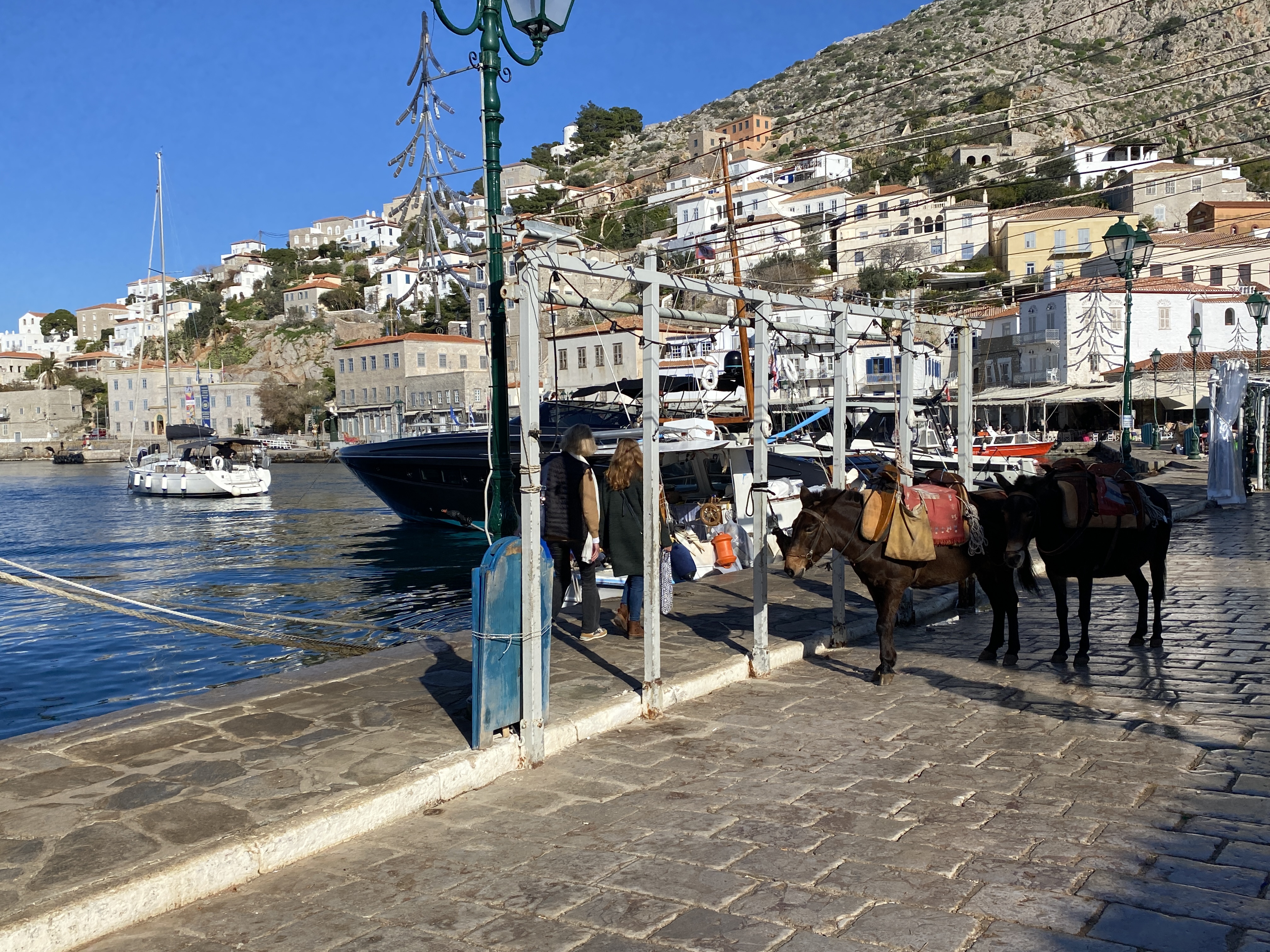 1515, обедали, кормили местных кошек, сфотографировались с ослами и вышли из Гидры.
