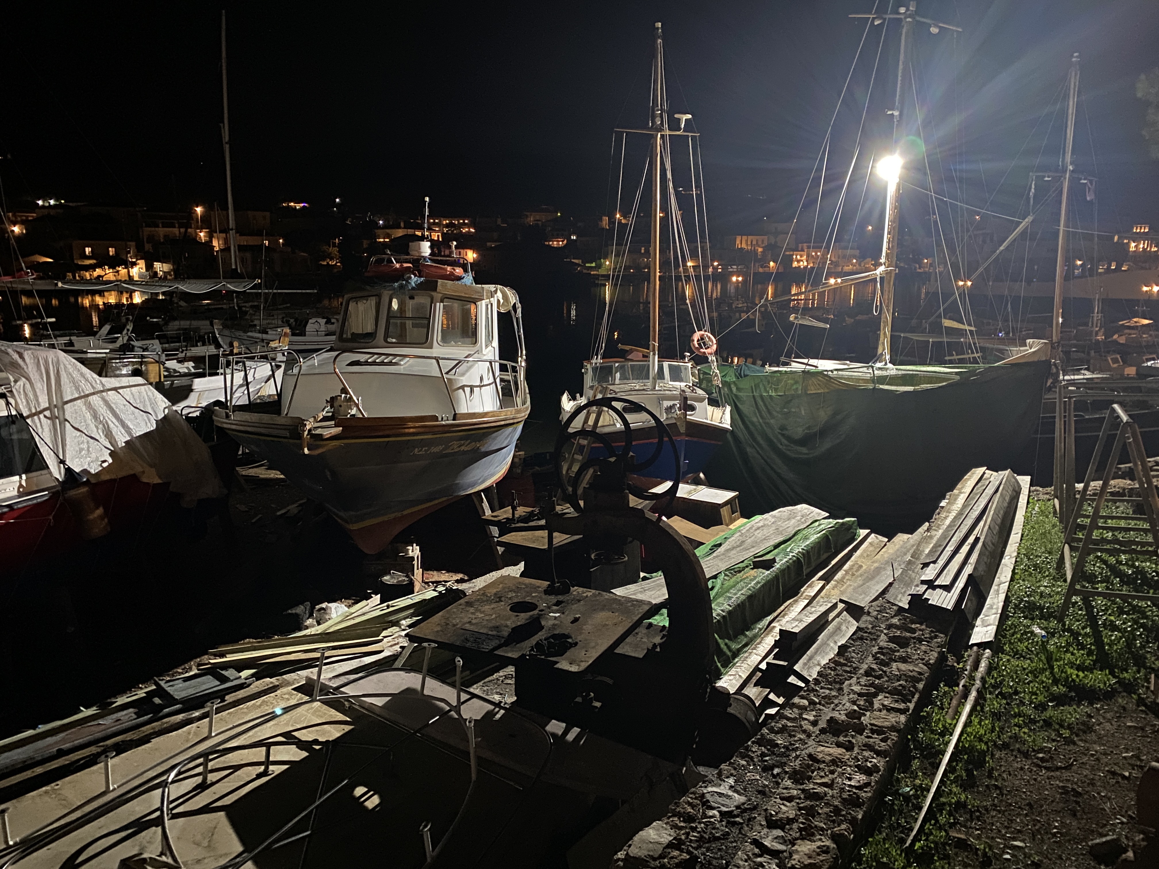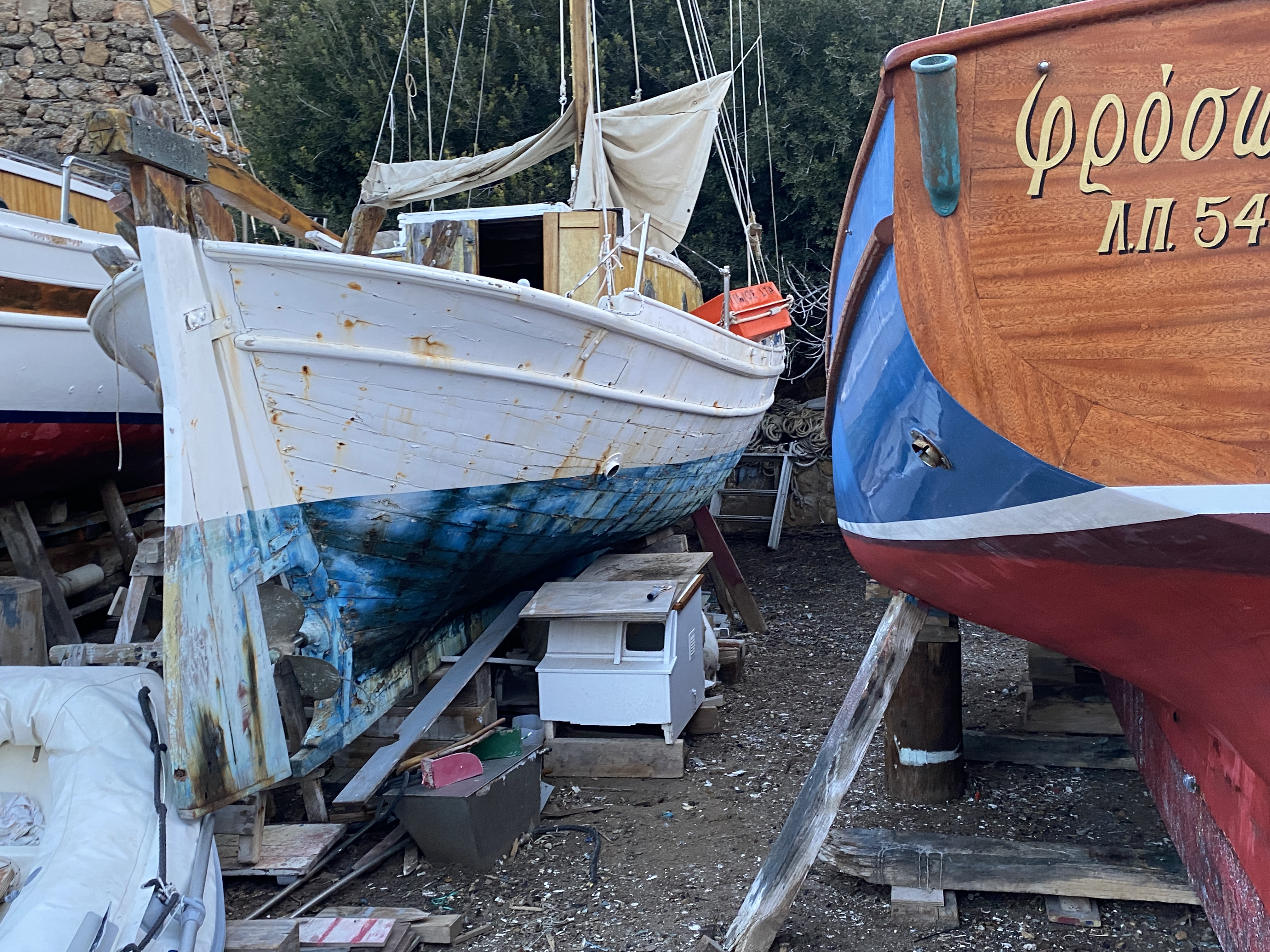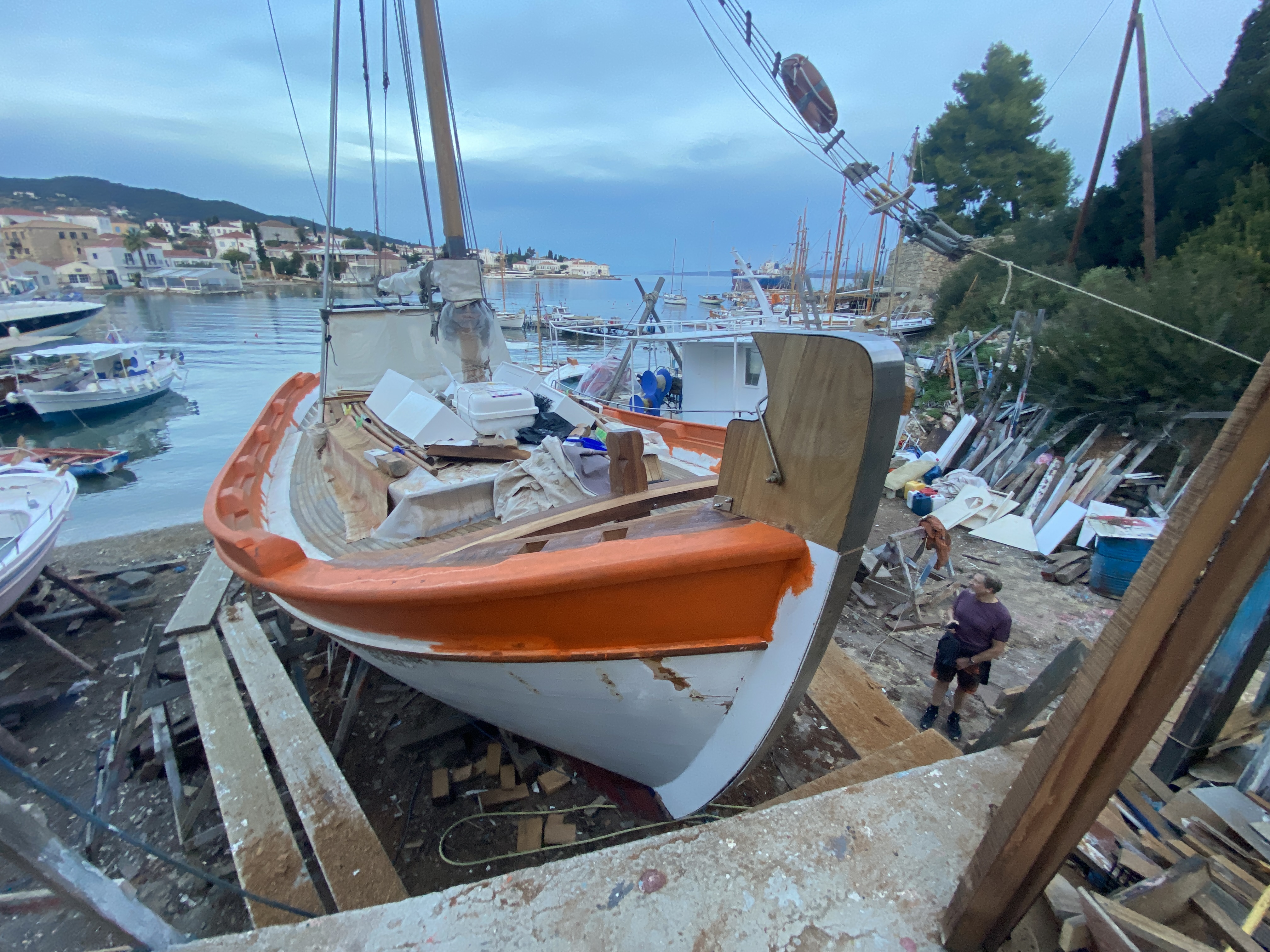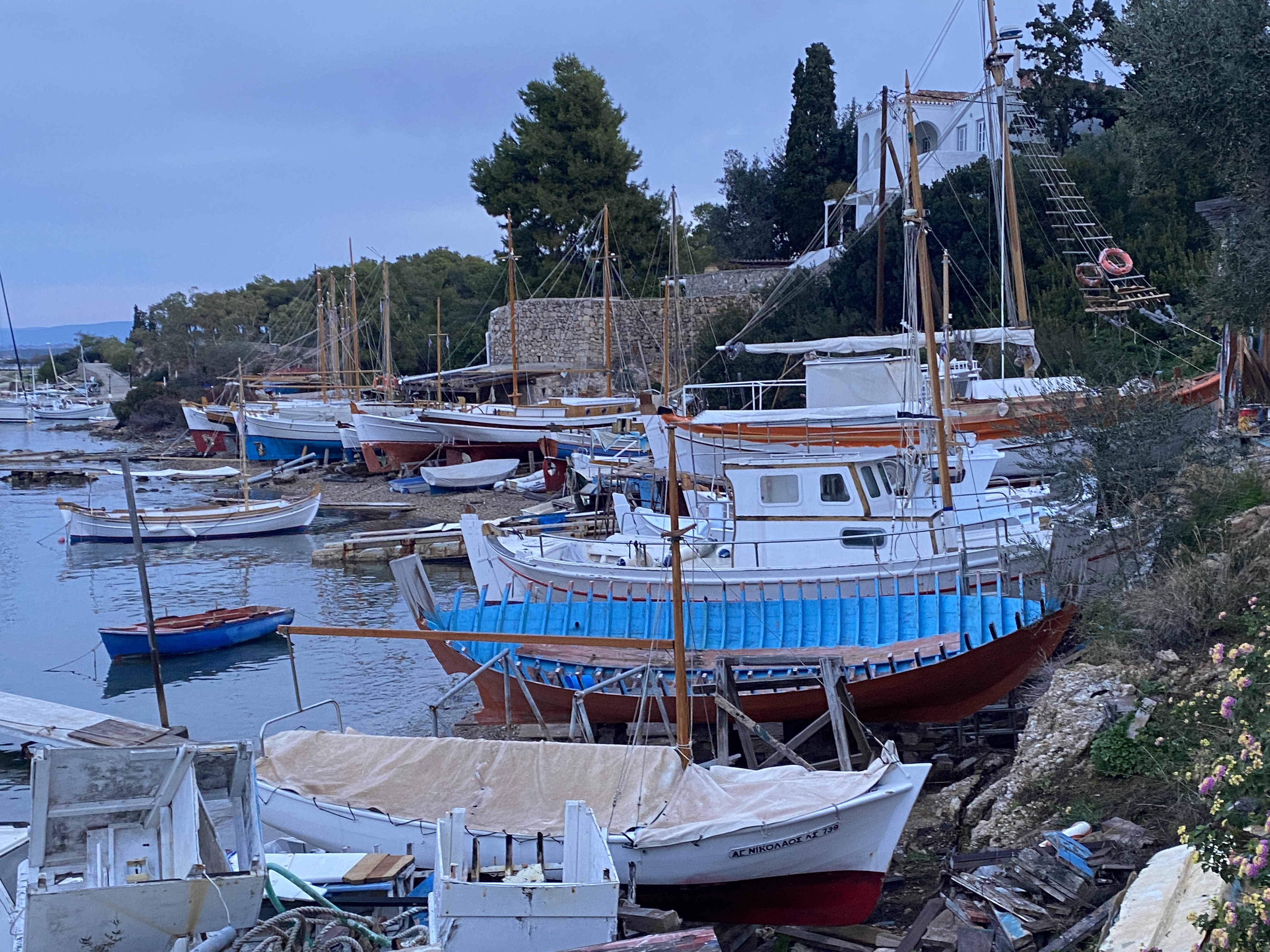 1755, пришли на остров Спецес. Побежали полюбоваться старыми деревянными лодками и верфями. Все есть. Как хорошо, что они еще живы, завтра мы их рассмотрим.